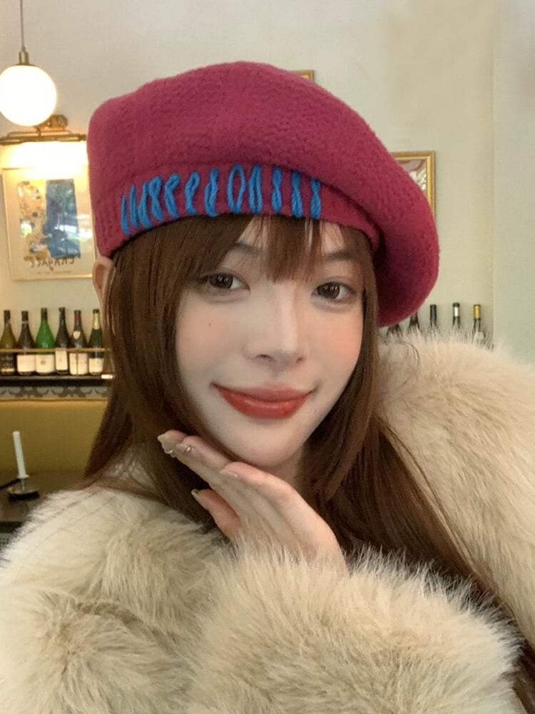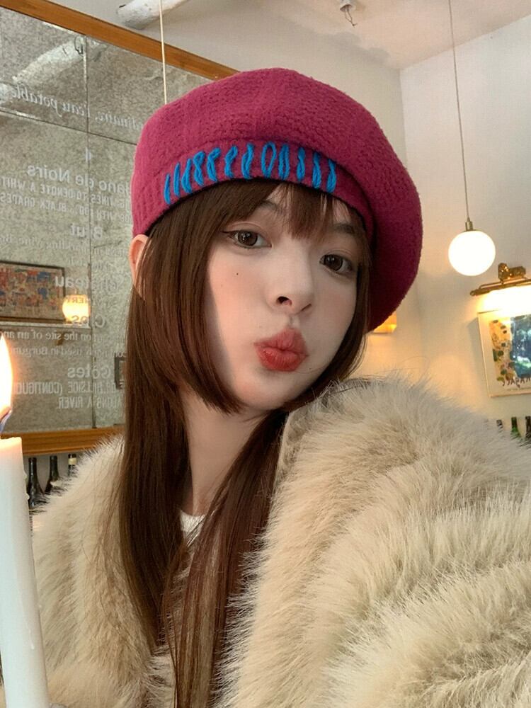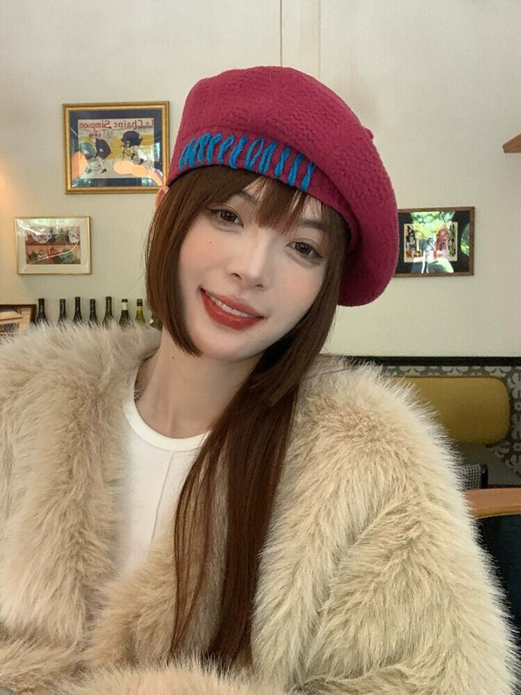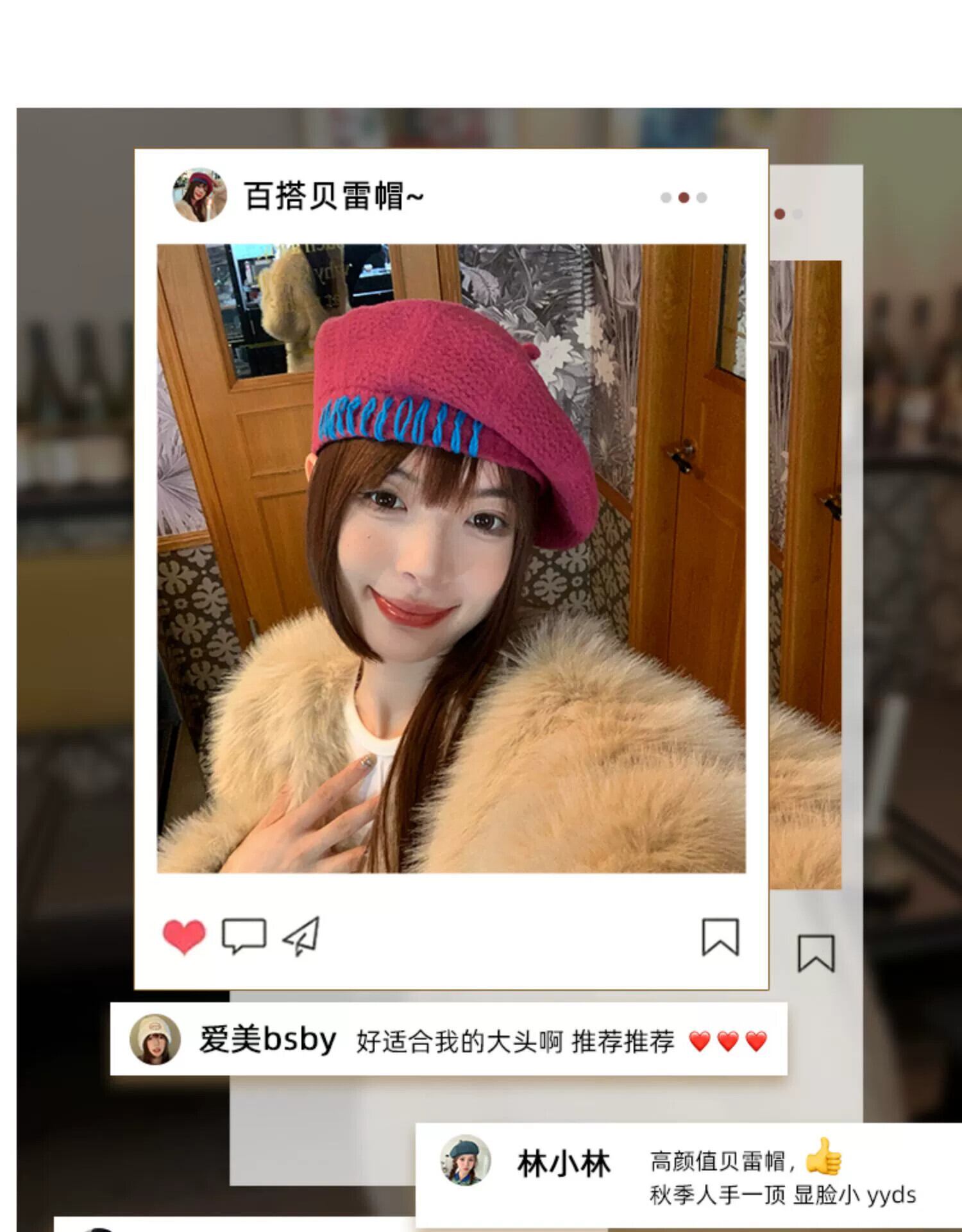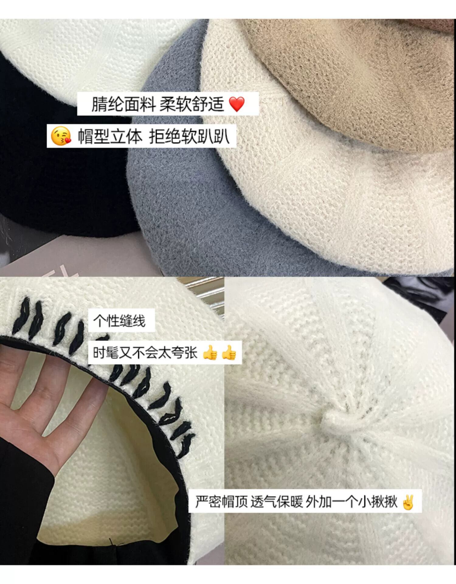 オーバーロックステッチニットベレー帽女性の秋と冬オールマッチ文学と芸術ショーの顔小さな画家の帽子通気性のある暖かいウールの帽子 オータム 秋物 ウィンター 冬物 ベレット ヘアアクセサリー 15dd94324606150