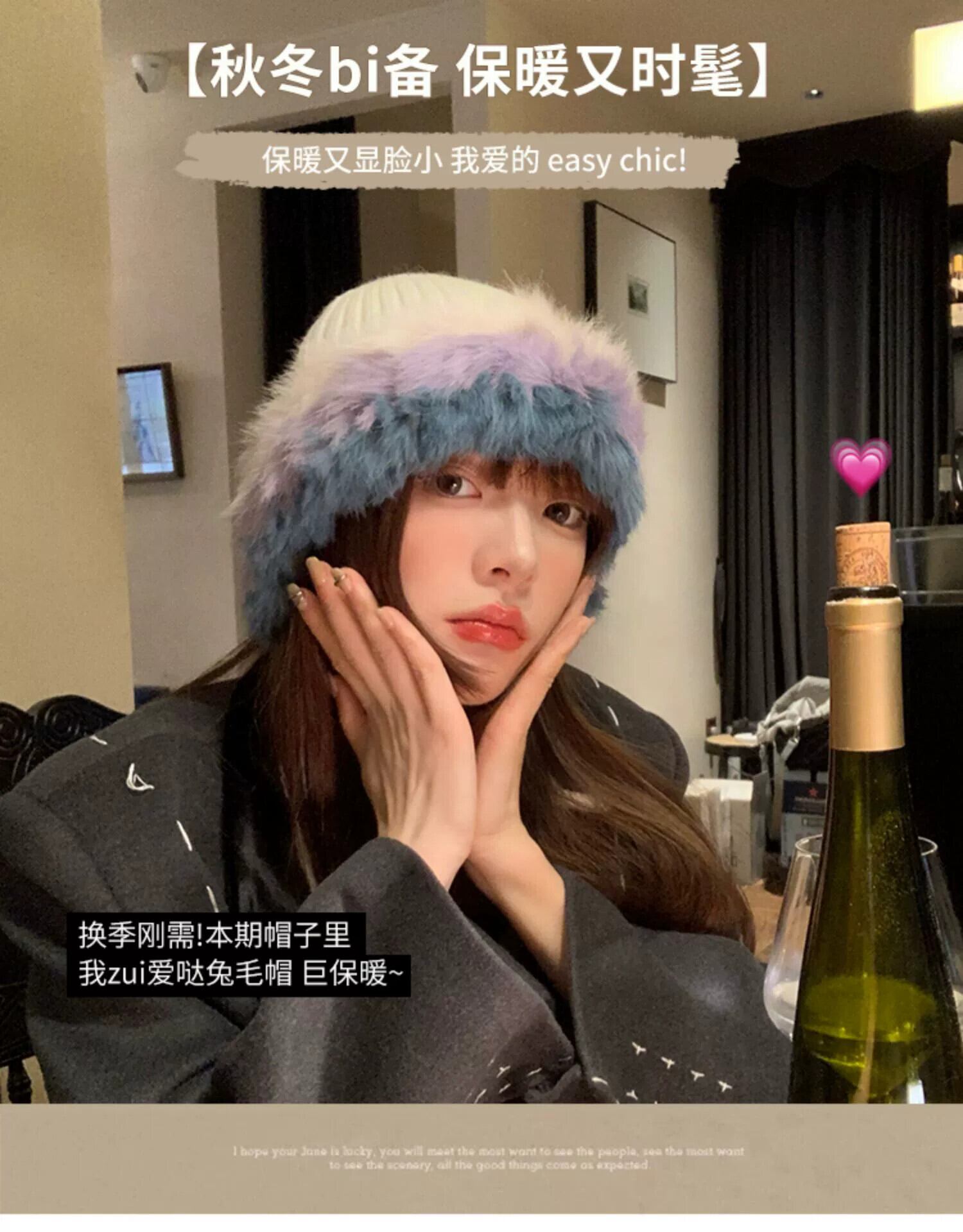 ラビットファーハットレディース秋冬バージョンオールマッチレトロビッグ頭囲ニット帽冬暖かい毛皮耳保護ウール帽子 オータム 秋物 ウィンター 冬物 15dd65110404350
