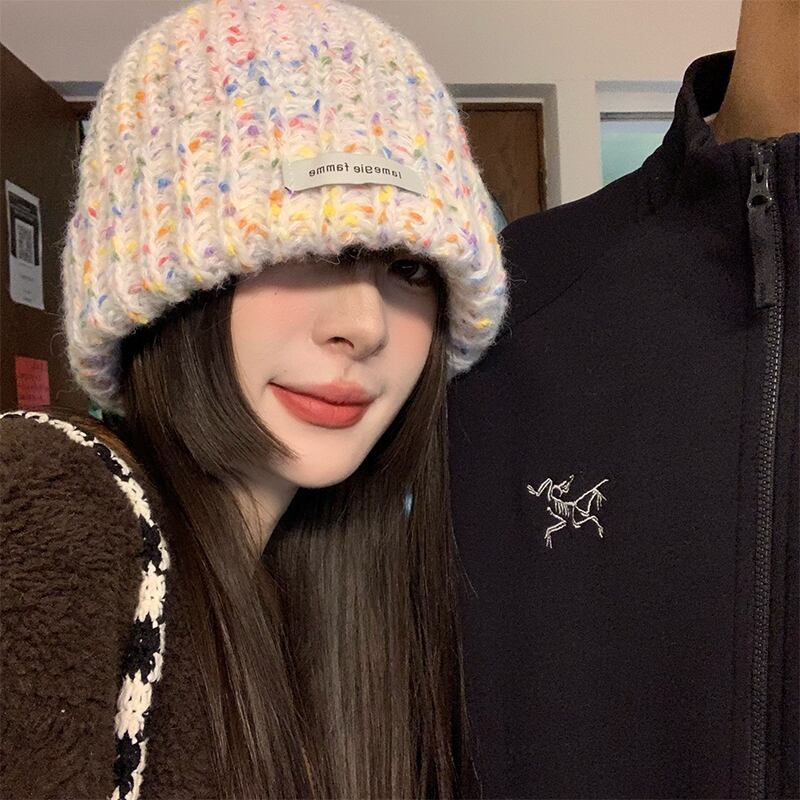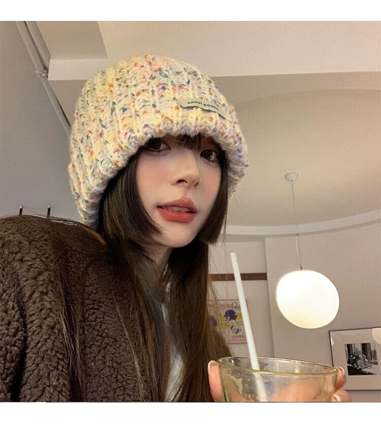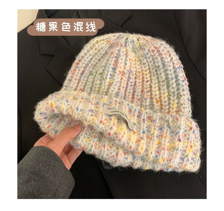 キャンディーカラーのかわいいウール帽子女性イン秋冬暖かいカジュアルオールマッチ大きな頭囲ニット顔小 レッド 大人ガーリー スウィート キュート オータム 秋物 ウィンター 冬物 15dd37427626956