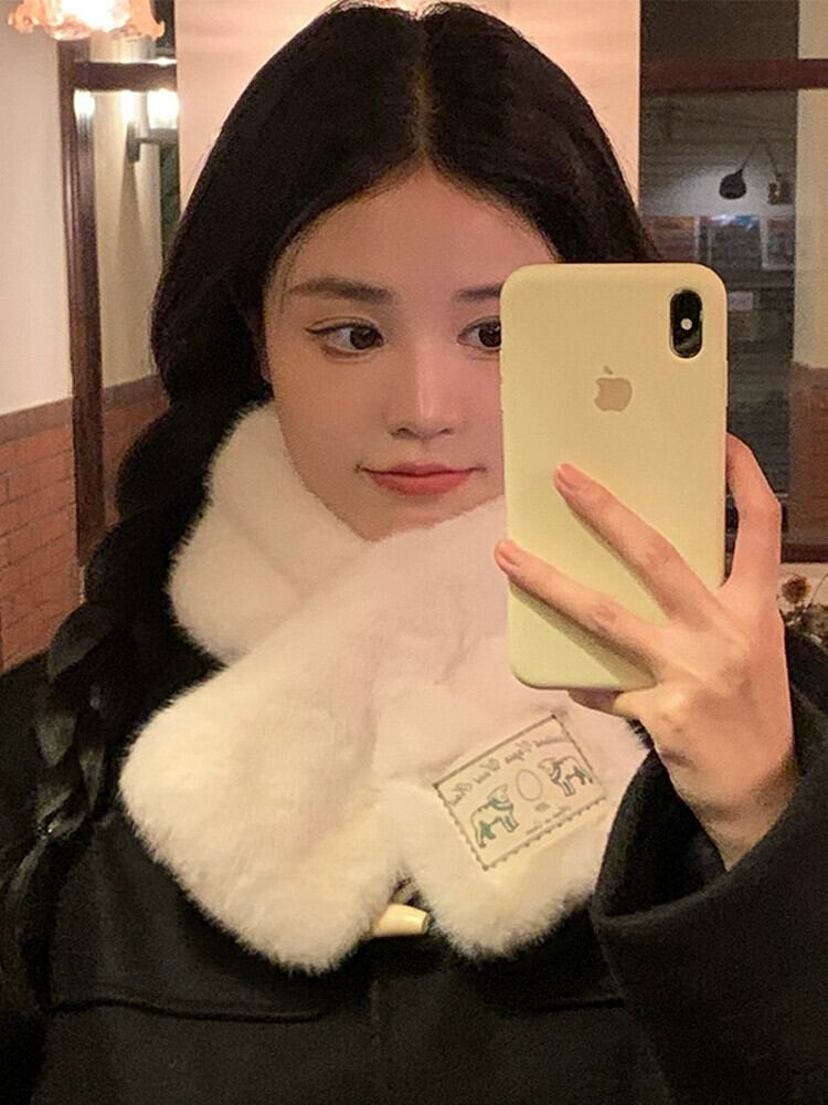 かわいいぬいぐるみスカーフ女性の冬 2022 新しいオールマッチ学生毛皮のようなショートスカーフ防寒と暖かい冬 大人ガーリー スウィート キュート カジュアル ウィンター 冬物 15dd48026088535