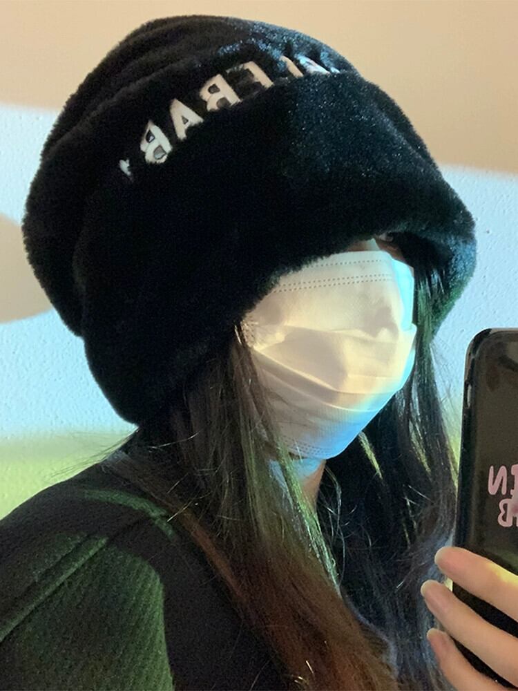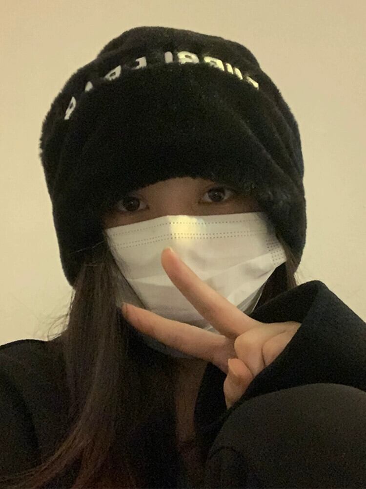 大きな頭囲コールド帽子女性の冬のショー顔小さな暖かいぬいぐるみ黒パイル帽子ネットレッド新しい豪華な包頭帽子 ブラック ウィンター 冬物 15dd45661507595