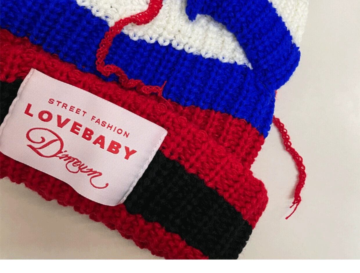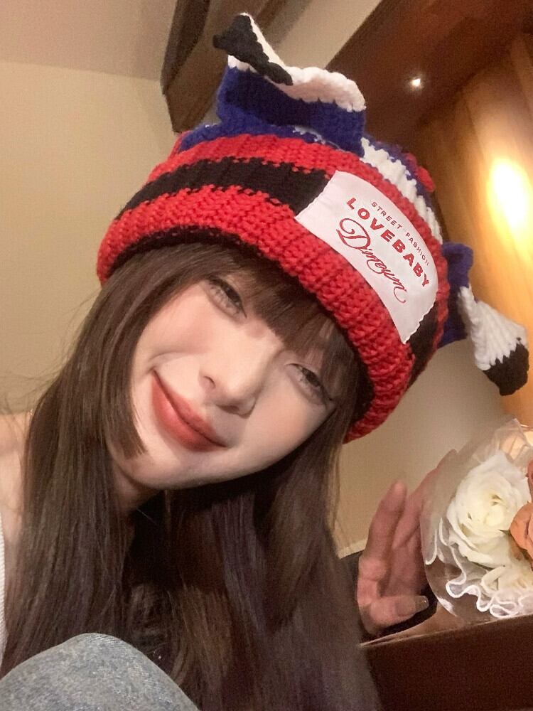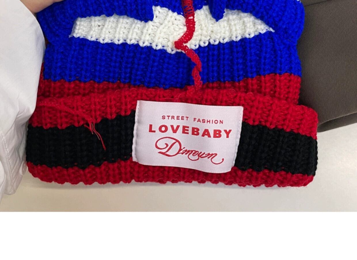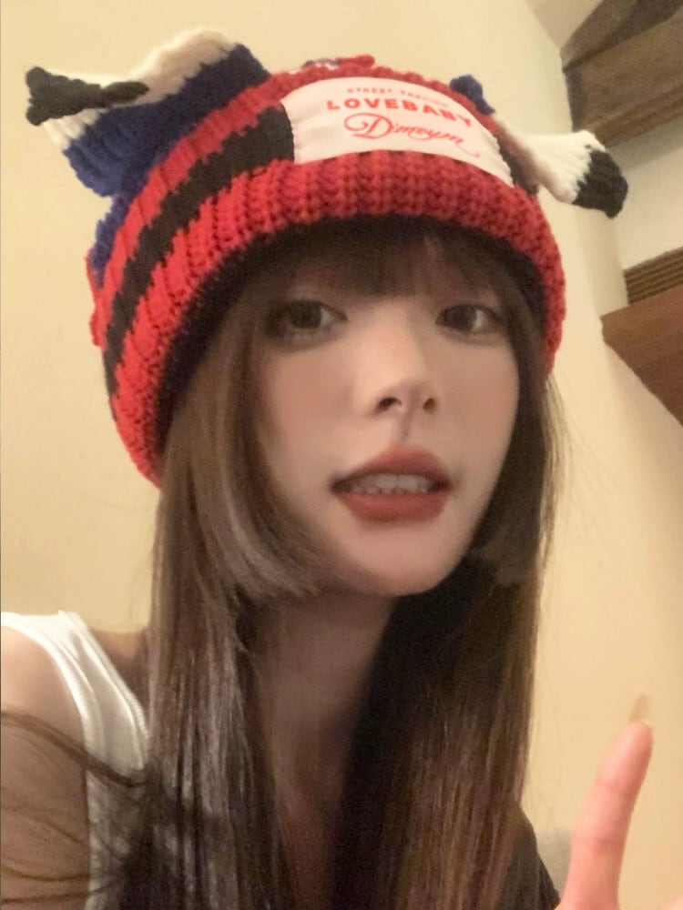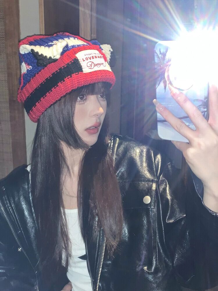 インコントラストカラーニット帽子女性の秋と冬のかわいい猫耳パッチウール帽子冬肥厚暖かい耳保護帽子 大人ガーリー スウィート キュート カジュアル オータム 秋物 ウィンター 冬物 15dd56516037438
