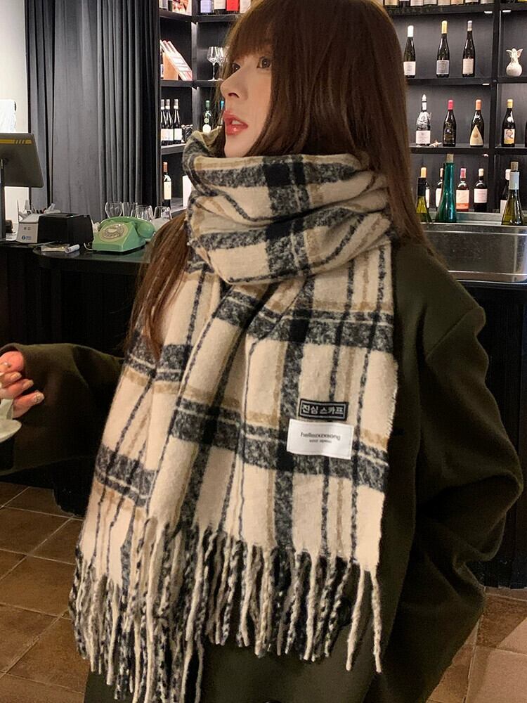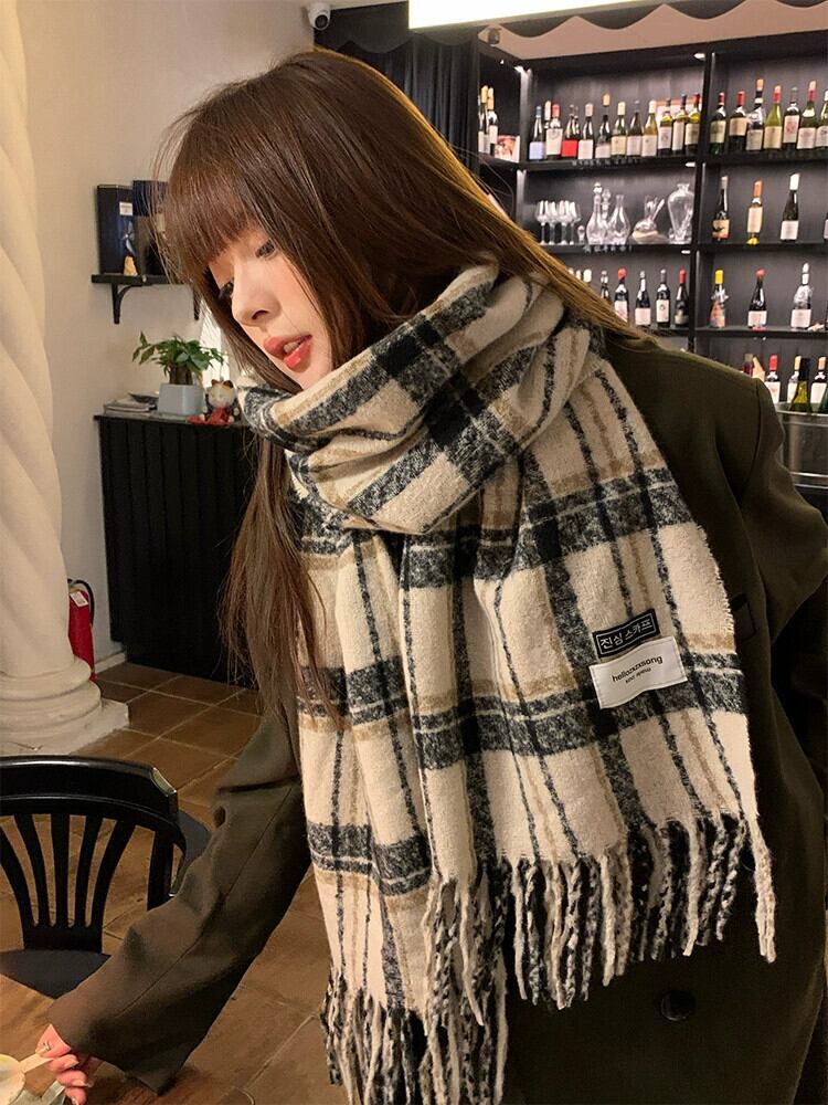 チェック柄テル暖かいスカーフ女性の秋と冬のスタイルのカラーマッチング学生ショールファッションオールマッチ肥厚ロングネックスカーフ オータム 秋物 ウィンター 冬物 15dd22730344888