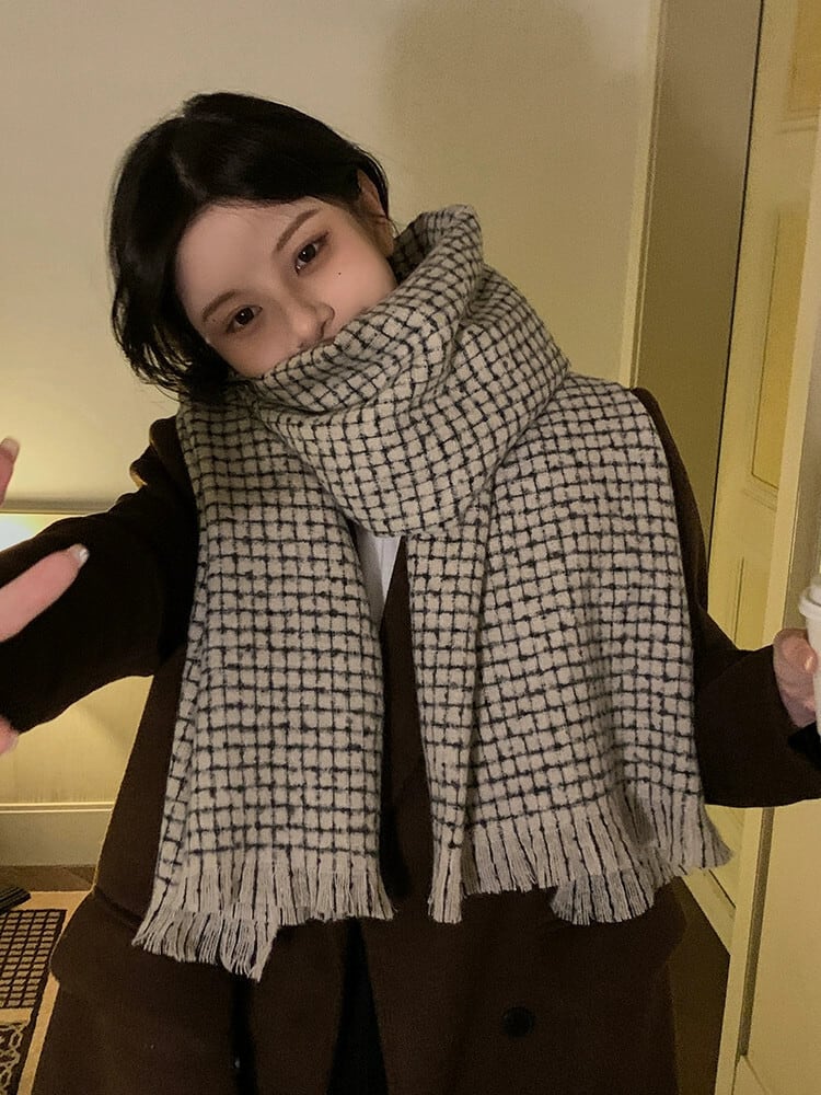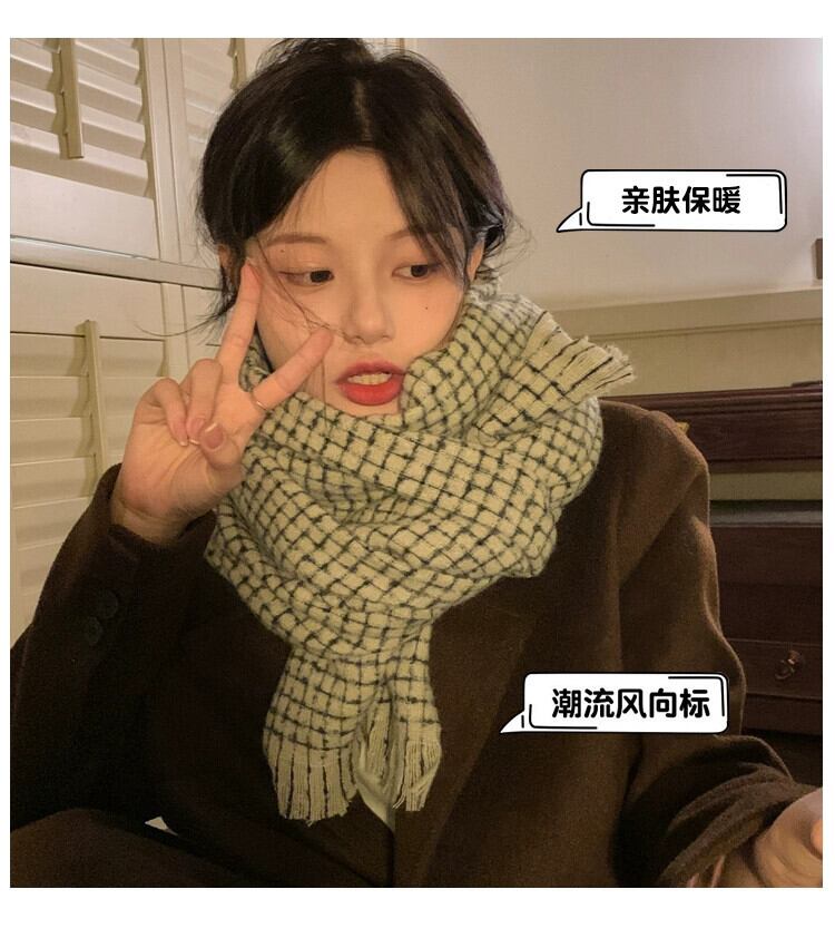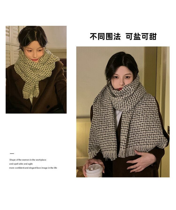バージョンのレトロなチェック柄スカーフ女性冬学生オールマッチファッションデュアルユースロングショール厚く暖かいスカーフ男性トレンド ウィンター 冬物 15dd36224760904