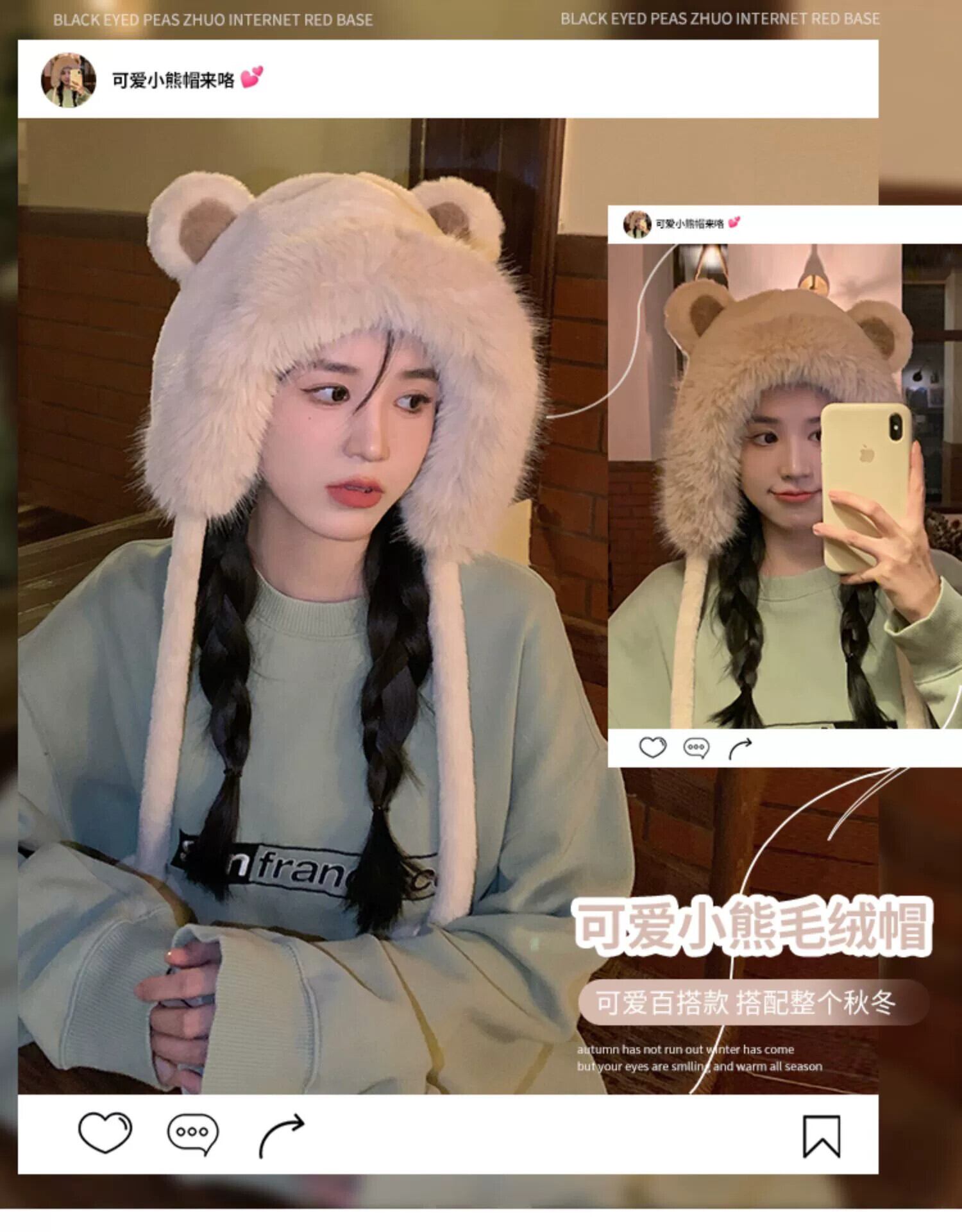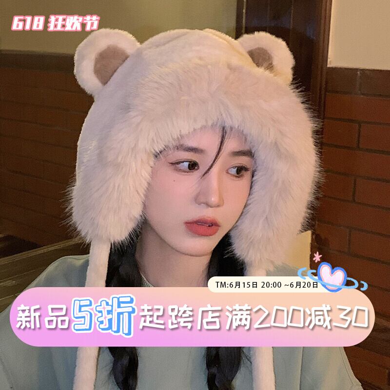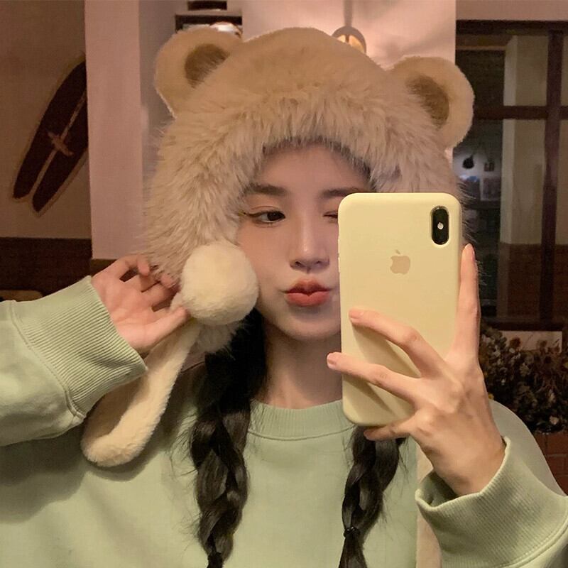 かわいいクマの帽子のバージョン女性の冬雷峰帽子耳保護暖かい冷たい肥厚豪華なサイクリングプルオーバー帽子 大人ガーリー スウィート キュート カジュアル ウィンター 冬物 15dd95317956262