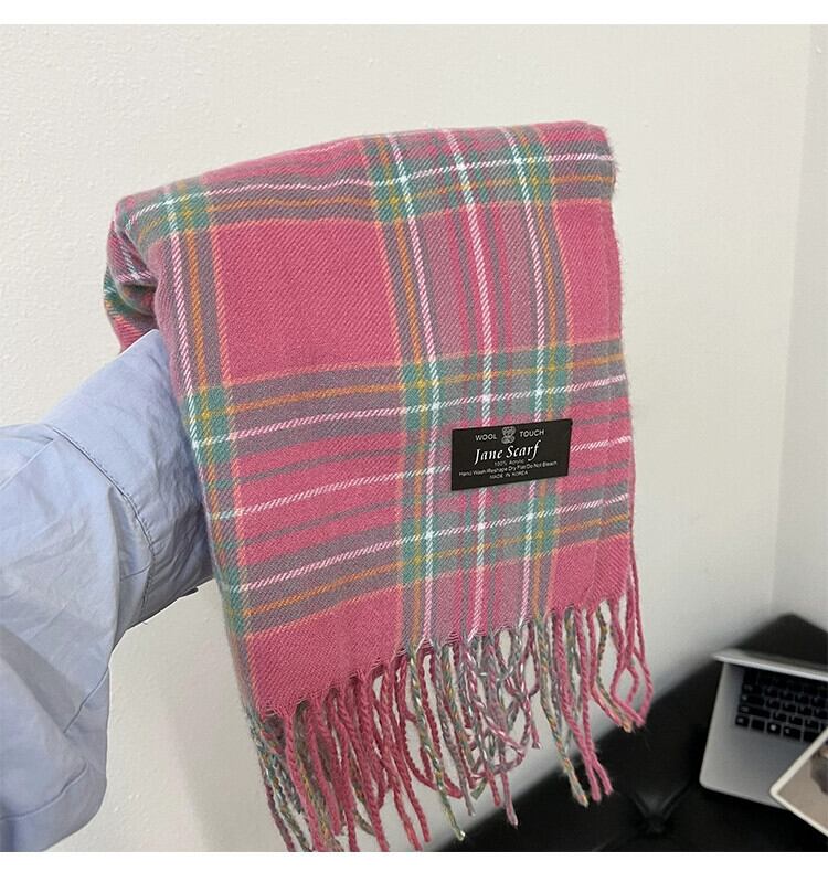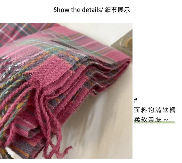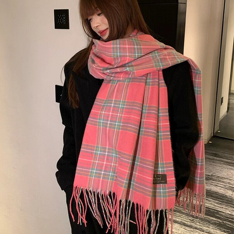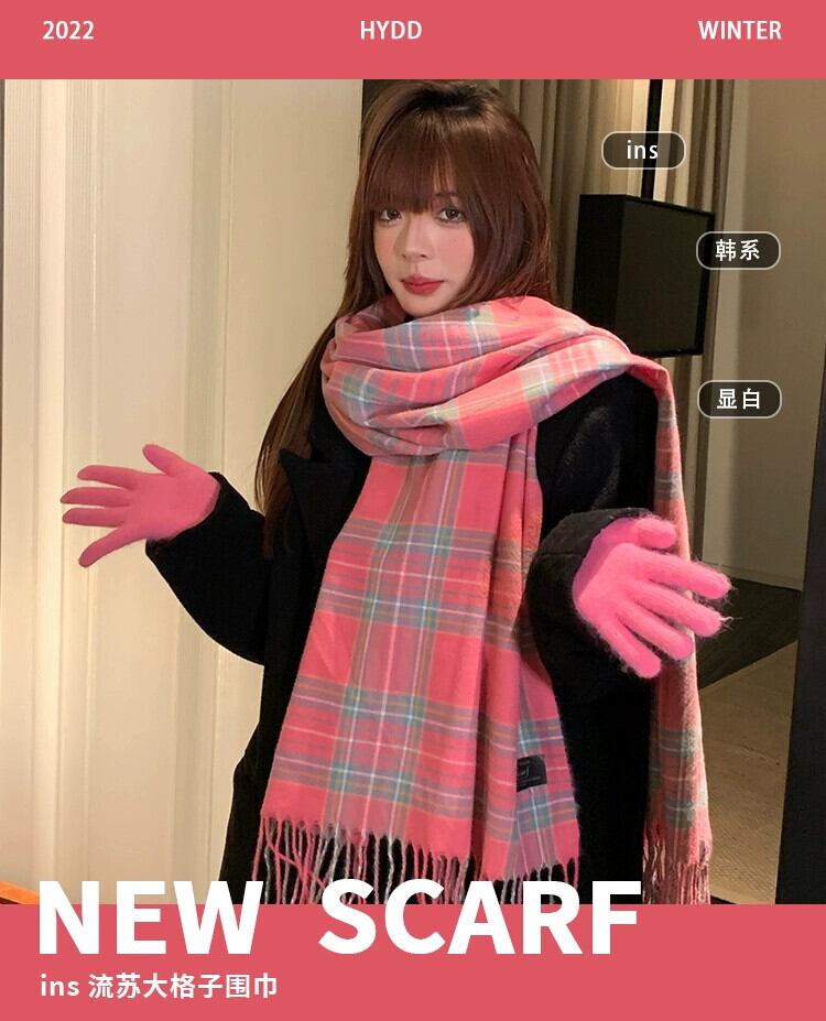 赤のチェック柄スカーフ女性 2022 冬の新バージョンオールマッチ模造カシミヤショール学生暖かいデュアルユーススカーフ レッド ウィンター 冬物 15dd12154815053