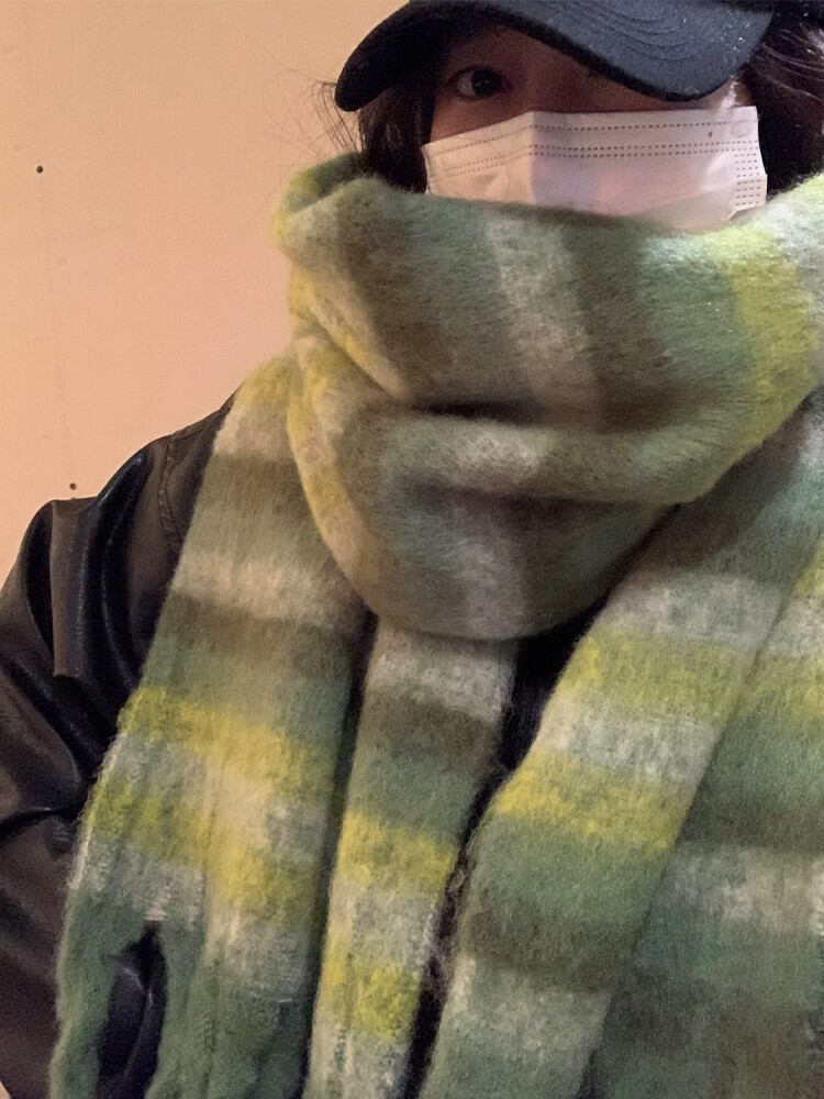 バージョンのストライプスカーフ冬高品質起毛カラー暖かいスカーフ学生カップルショール兼用 ウィンター 冬物 15dd52120401078