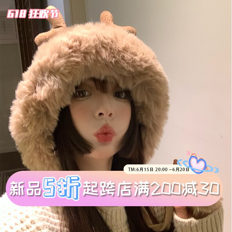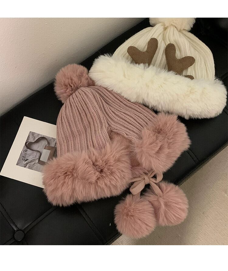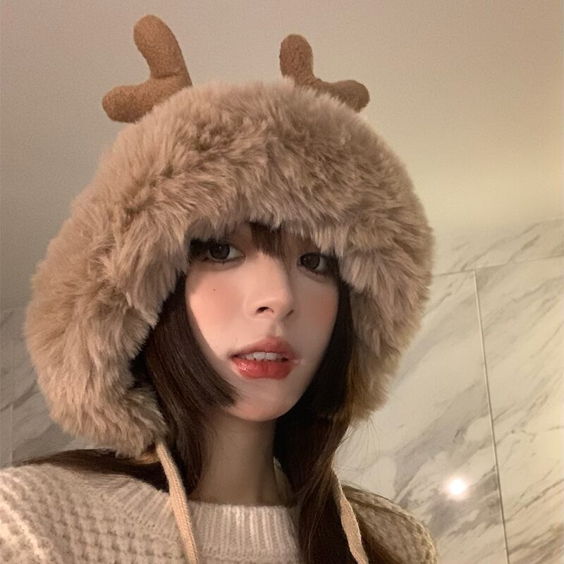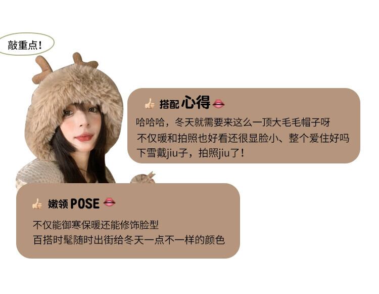 帽子女性のかわいい枝角ネット赤い毛皮ボール東北雷峰帽子 ese 冬暖かいプラスベルベット耳保護サイクリング帽子 レッド 大人ガーリー スウィート キュート カジュアル ウィンター 冬物 15dd34155685320