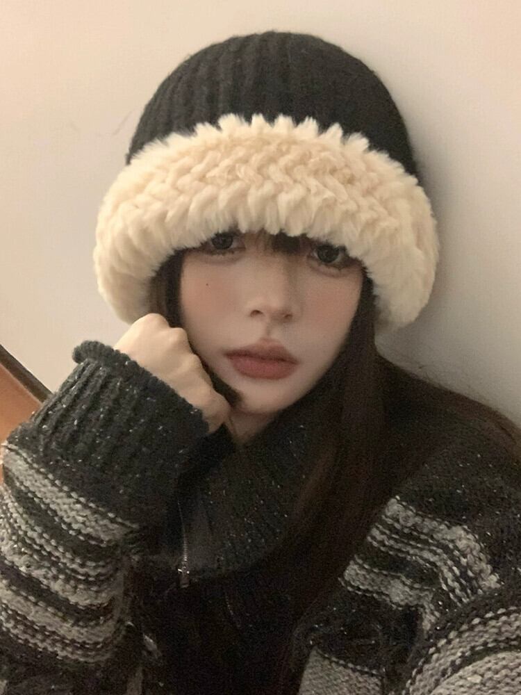 ぬいぐるみニットウール帽子女性の秋と冬暖かいオールマッチインかわいい顔小さい 2022 新しい盆地帽子冬 大人ガーリー スウィート キュート カジュアル オータム 秋物 ウィンター 冬物 15dd58414677889