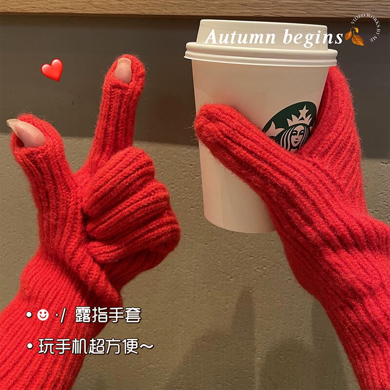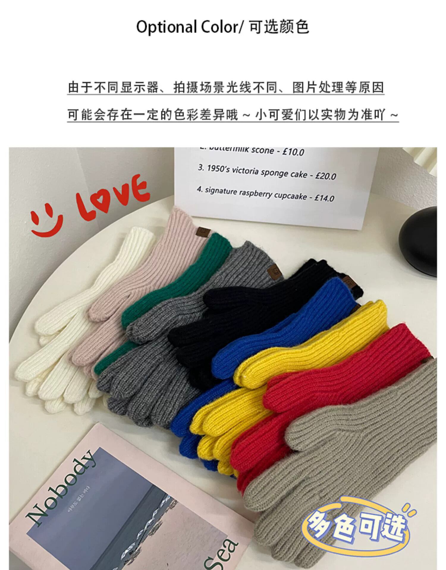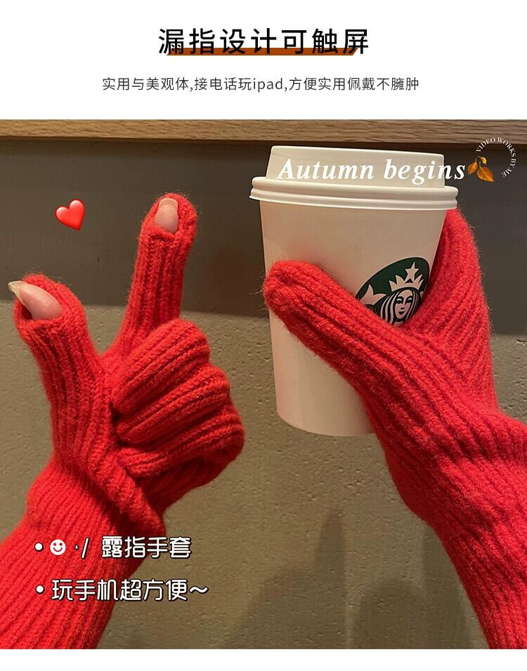 トレンディな手袋のバージョン冬の女性の純粋な色の露の指はタッチスクリーンをすることができます分割指厚く暖かい乗馬冬のウールのニット袖 ウィンター 冬物 ピュア 15dd13398650430