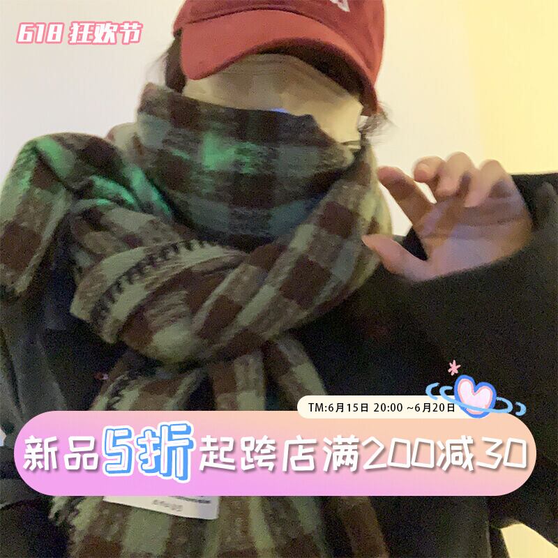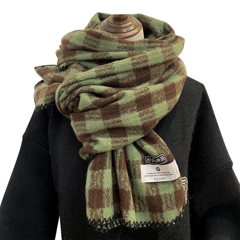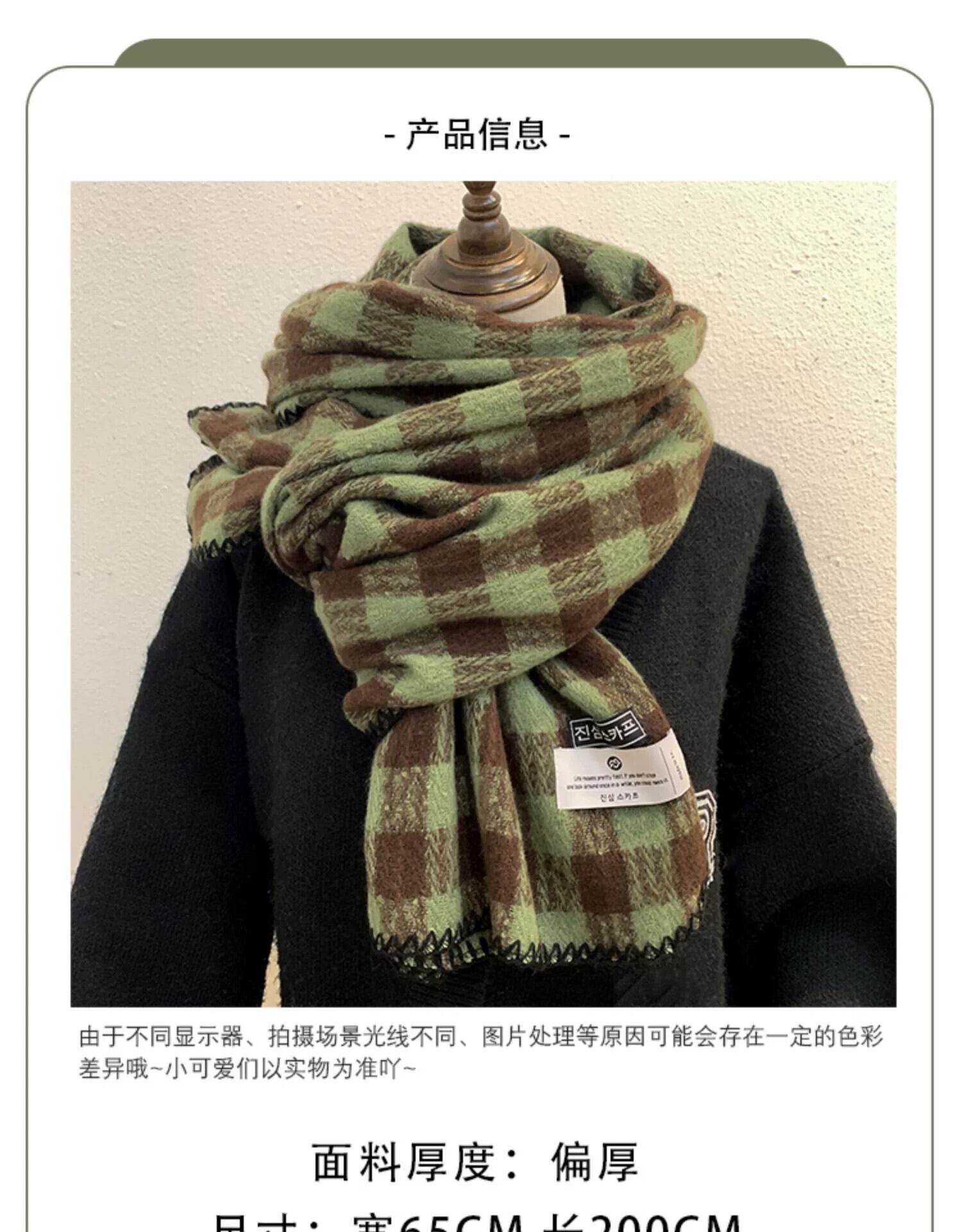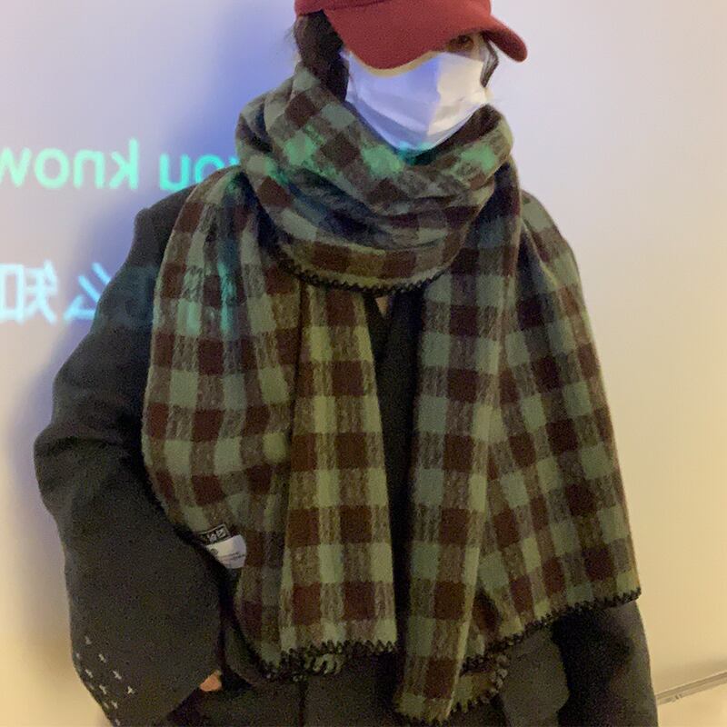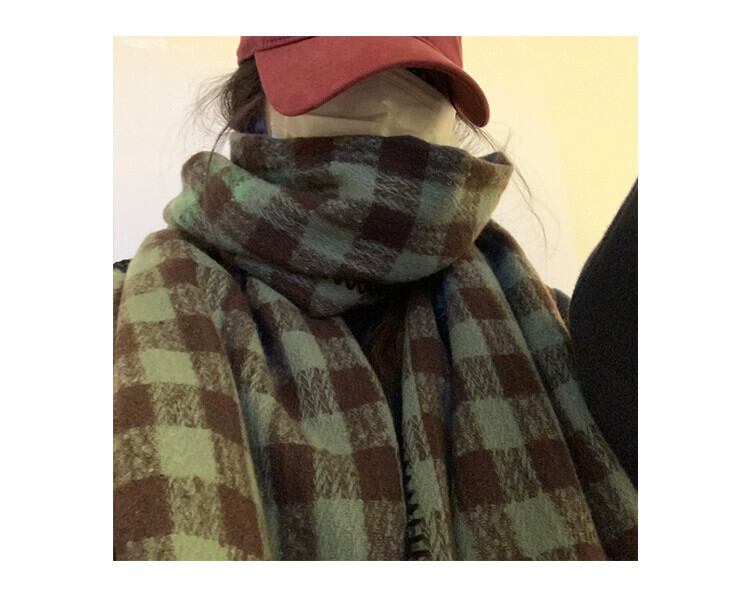 2022 冬肥厚イミテーションカシミヤチェック柄スカーフ女性バージョン多用途ショールウォームネックデュアルユースグリーン ウィンター 冬物 15dd40715513618