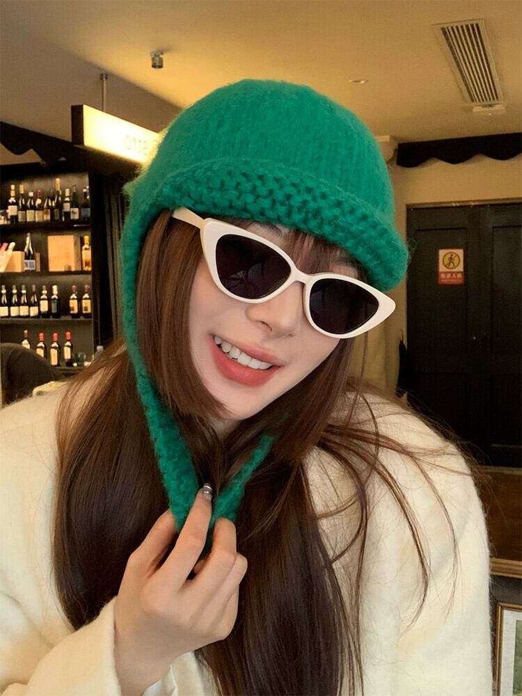 手編みウール帽子女性バージョン暖かくて耐寒性飛行雷峰帽子冬厚いニット耳保護帽子潮 ウィンター 冬物 15dd12635063479