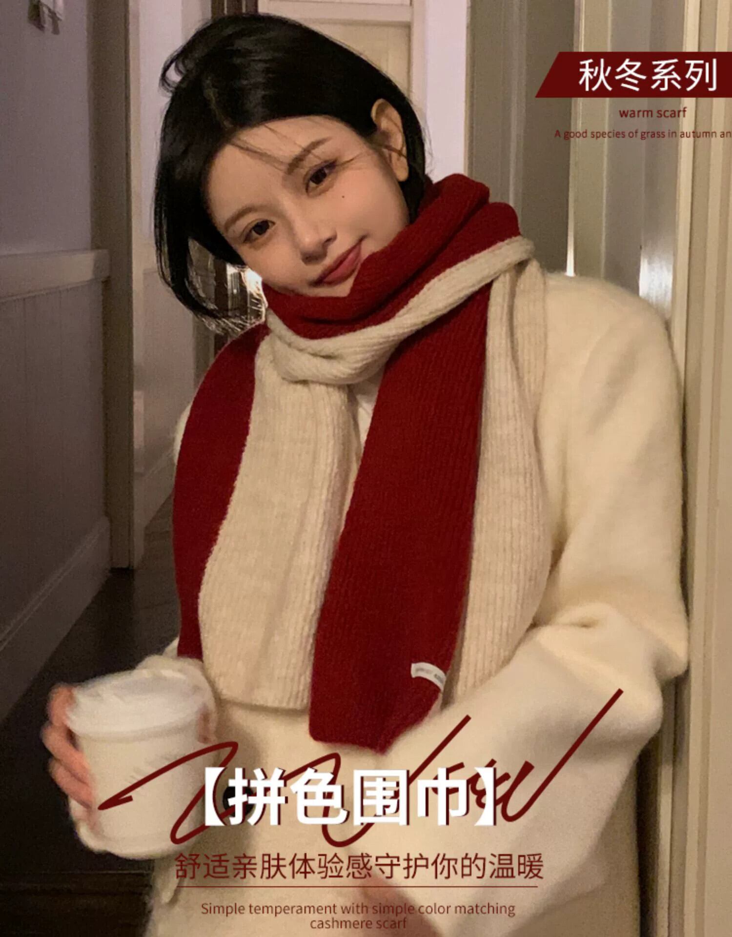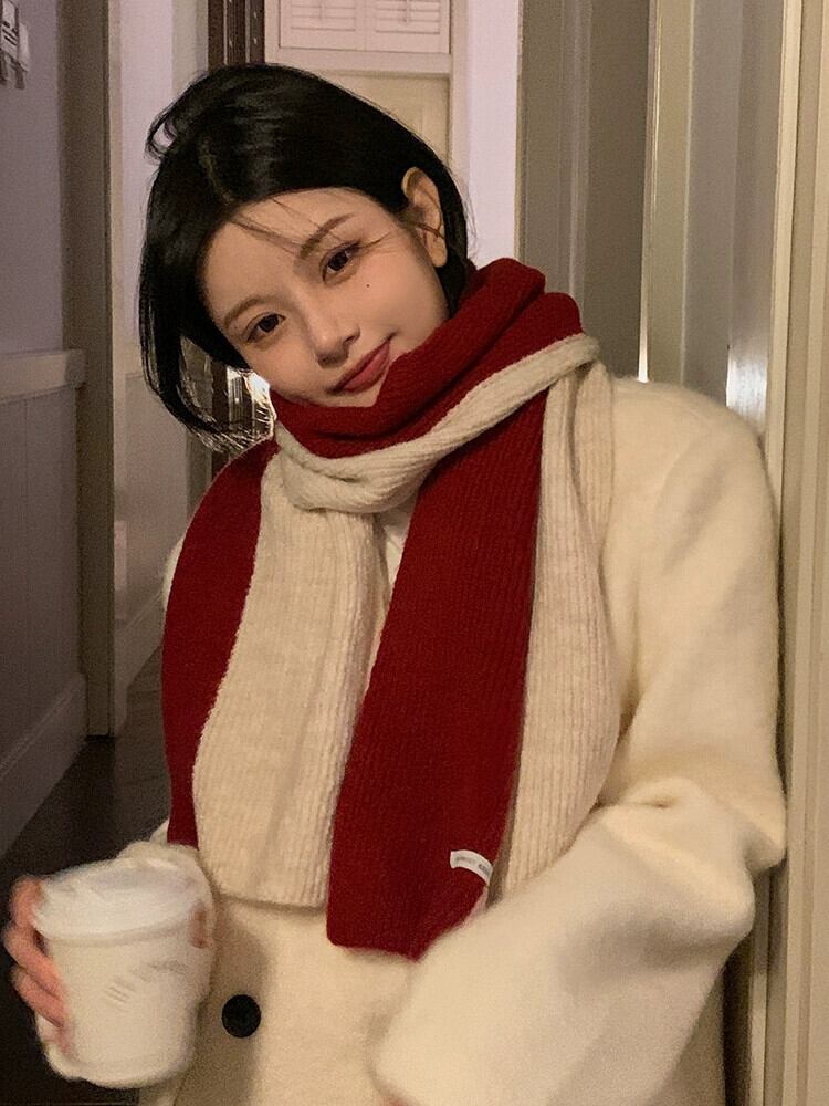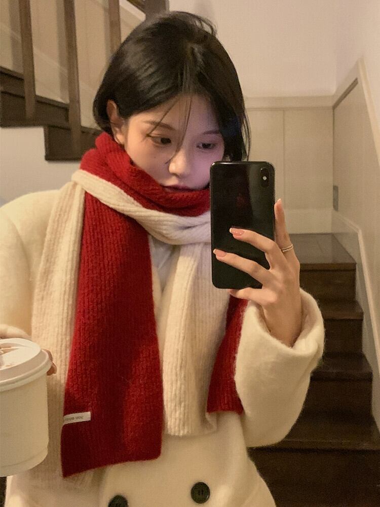 カラーブロックカレッジスタイルのウールスカーフのバージョンの女性の秋と冬オールマッチ厚く暖かい学生カップルニットスカーフ潮 オータム 秋物 ウィンター 冬物 15dd44106874254