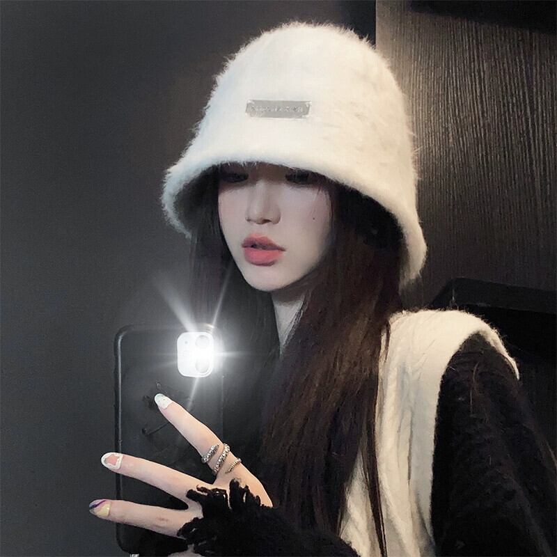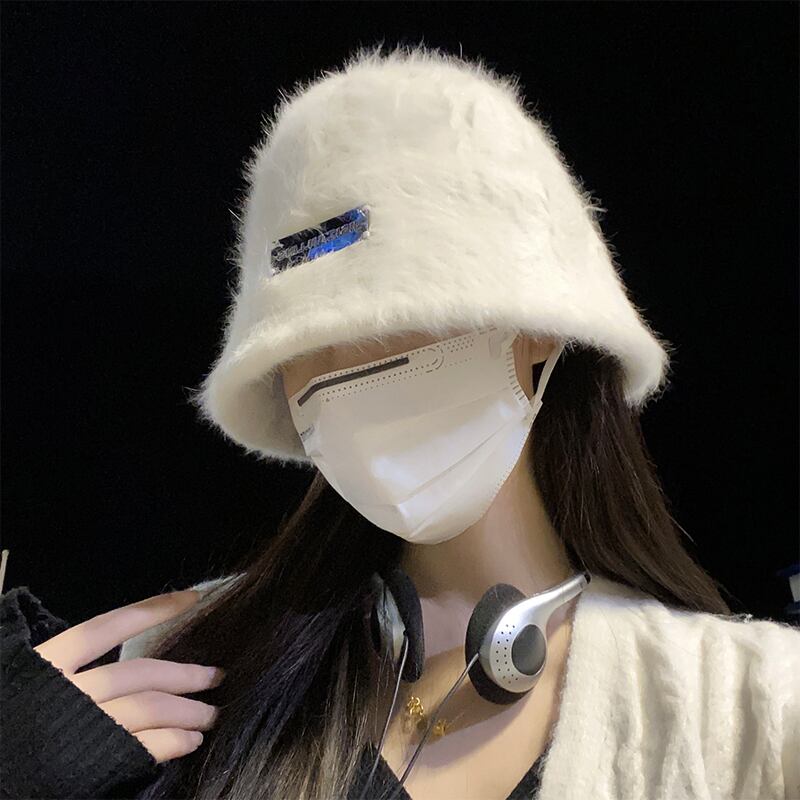 顔が見える小さなウサギの毛皮の漁師の帽子女性の秋と冬オールマッチ暖かい大きな頭周り盆地帽子白無地の顔豪華なバケットハット ホワイト オータム 秋物 ウィンター 冬物 15dd21626687406