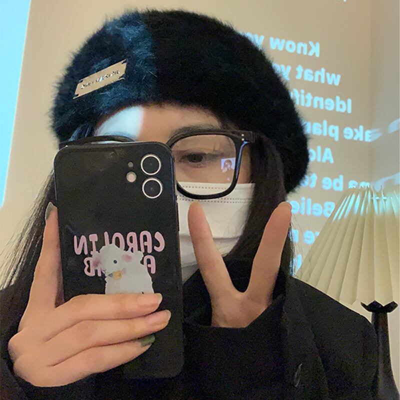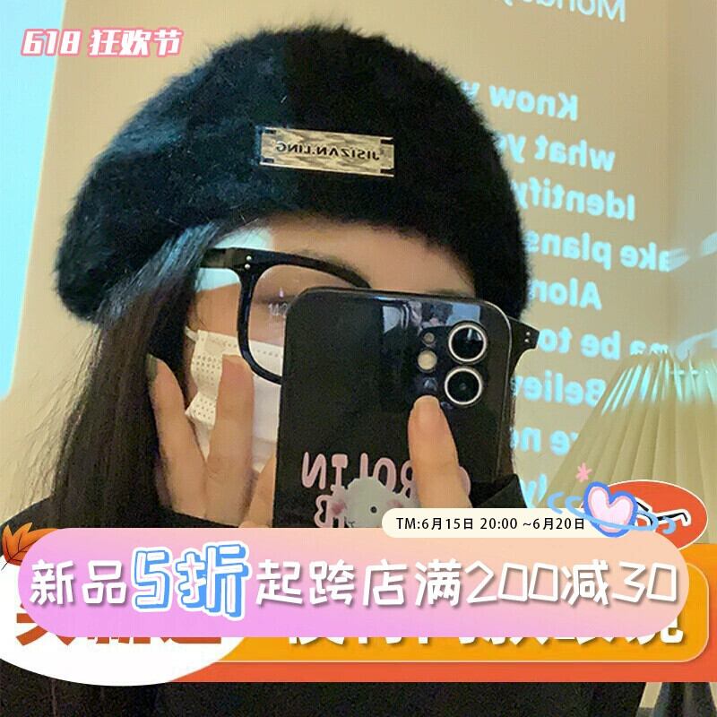 黒大きな頭囲ベレー帽女性の冬の新しい豪華な耐摩耗性病棟帽子ウサギの毛皮の画家の帽子顔見せ小さな帽子 ブラック ウィンター 冬物 ベレット ヘアアクセサリー 15dd14792058610