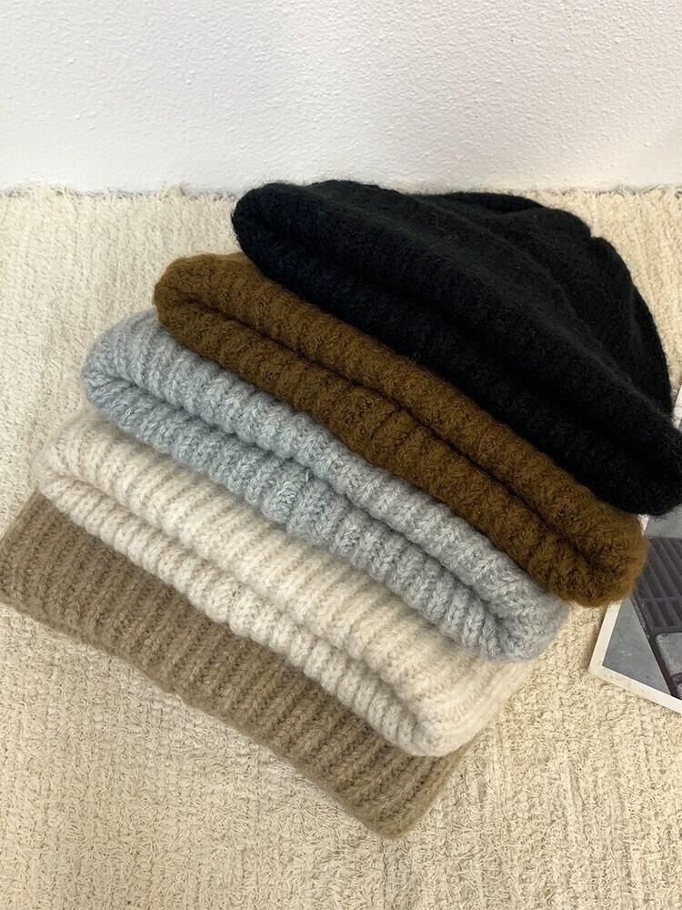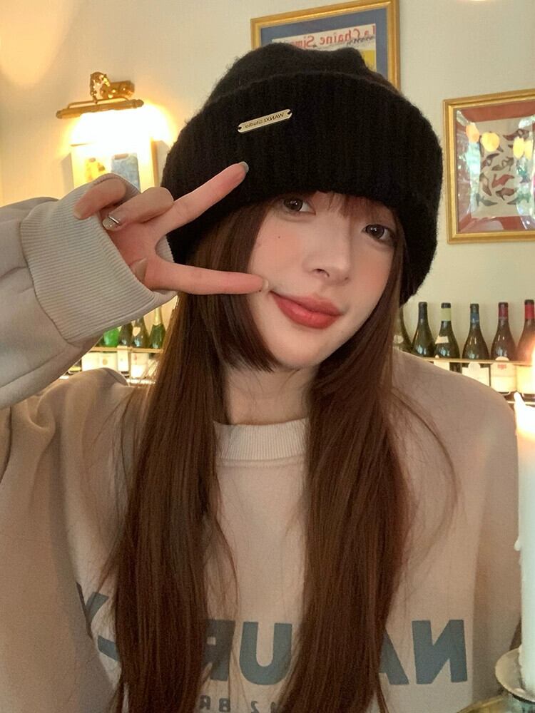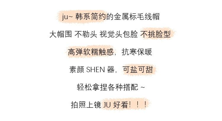 金属標準ビッグ頭囲ウール帽子女性の秋と冬バージョンシンプルなオールマッチイヤーマフ厚く暖かいニット帽子 オータム 秋物 ウィンター 冬物 15dd65031212184