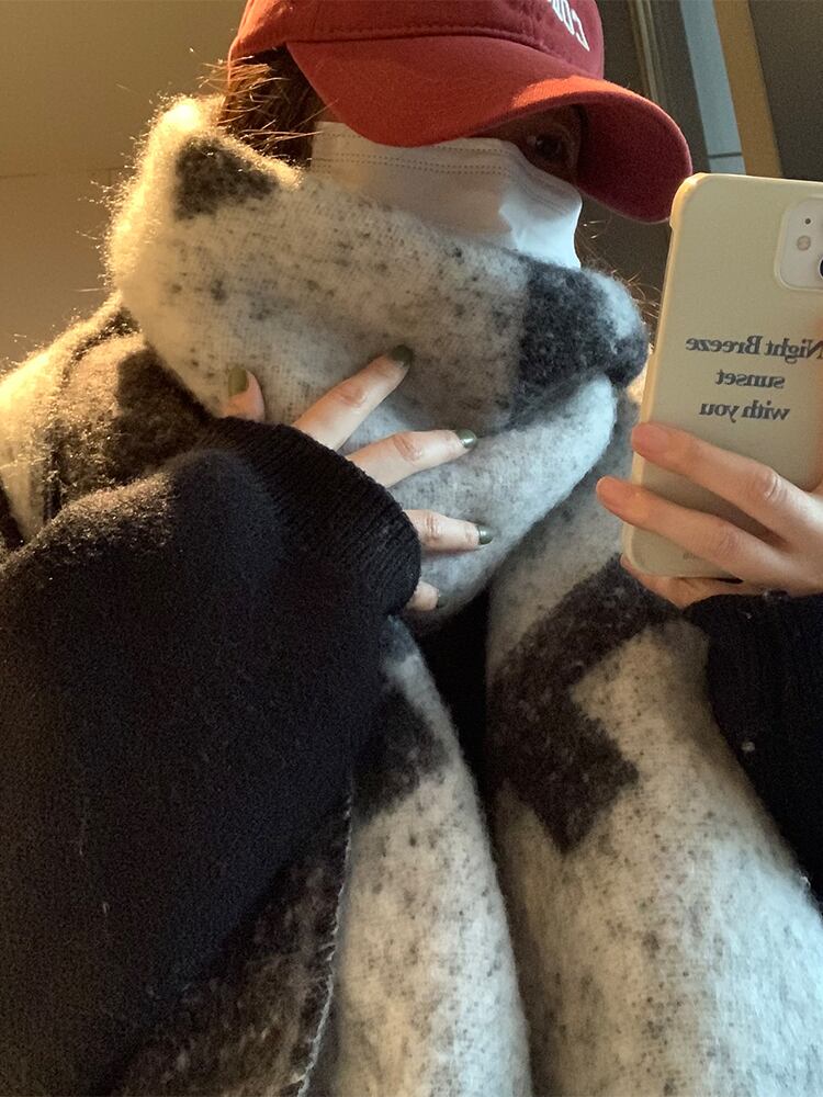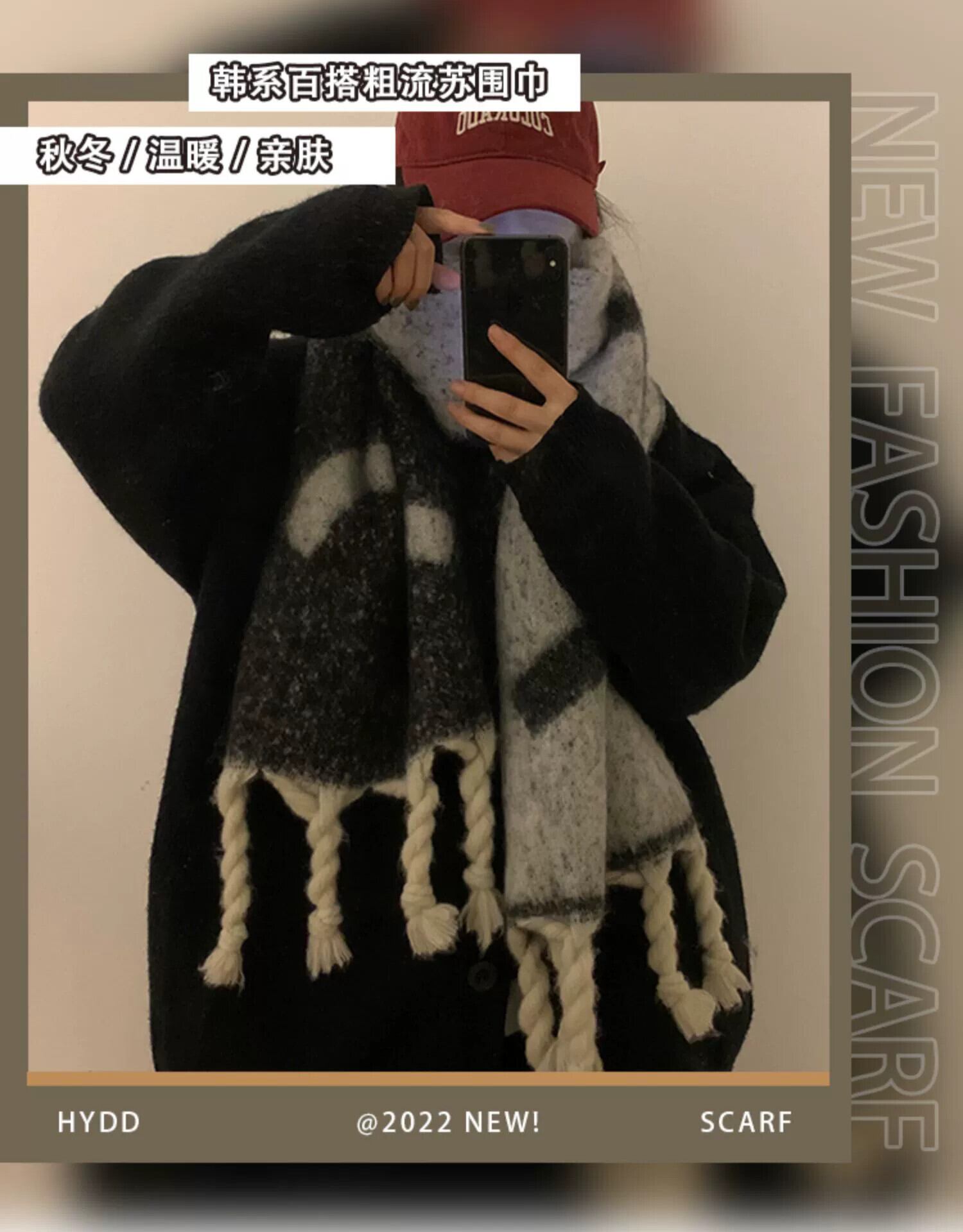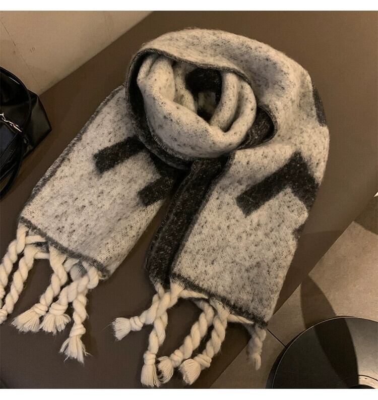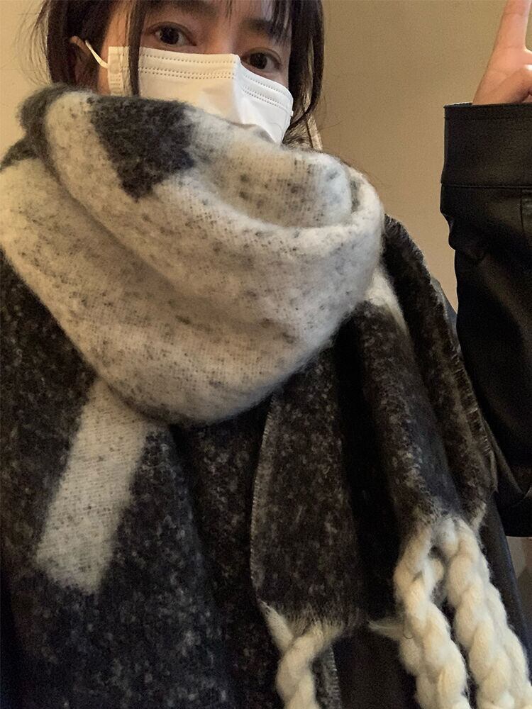 South の新しい大判スカーフ女性の冬グレーモヘア厚く暖かい防寒カップルショール高度なセンスネック ウィンター 冬物 15dd97002864547