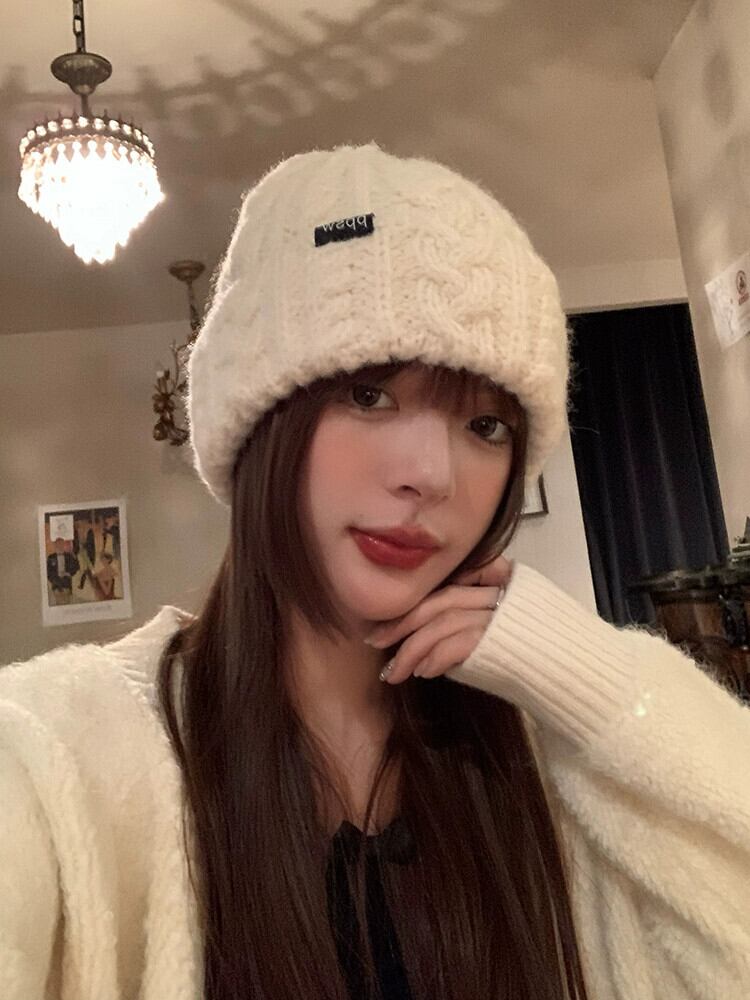 厚いウールの帽子の女性の秋と冬のインスタイルオールマッチ大きな頭囲ニット帽冬厚く暖かい耳保護コールドハット潮 オータム 秋物 ウィンター 冬物 15dd22322831158