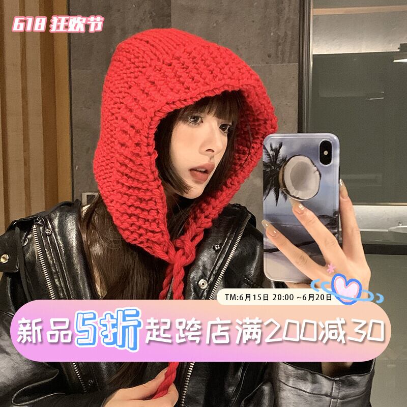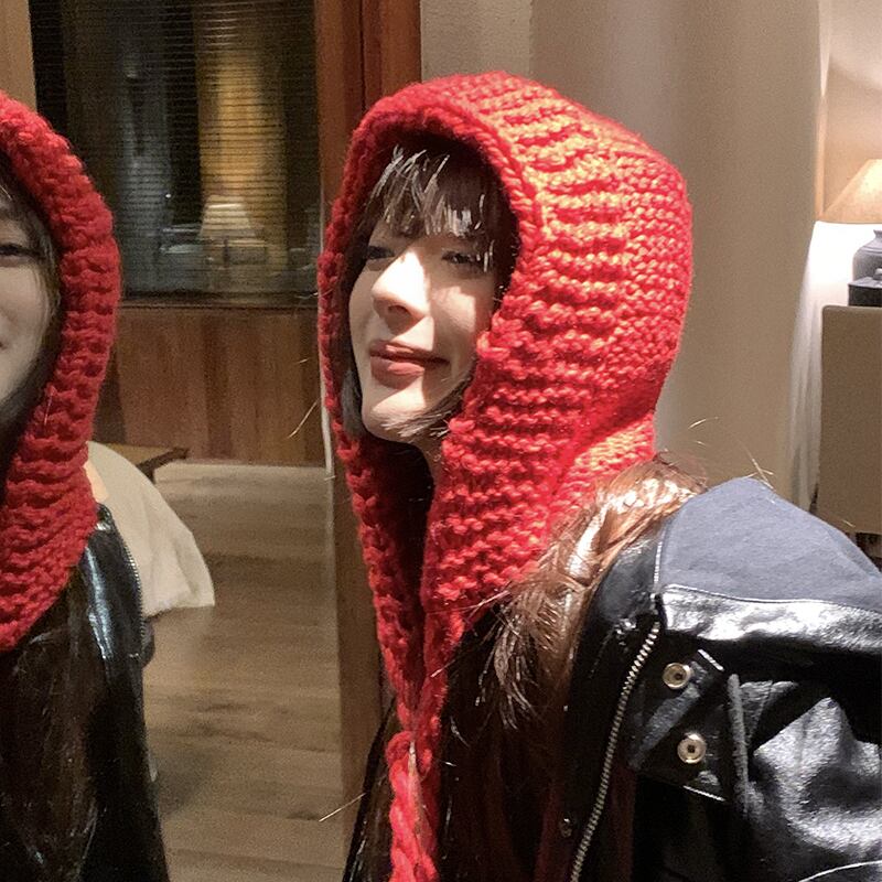 顔のバージョン小さなウールの帽子女性の大きな頭囲ニット帽子赤ずきんちゃんの冬のファッション肥厚暖かい包頭帽子 レッド ウィンター 冬物 15dd2342814011