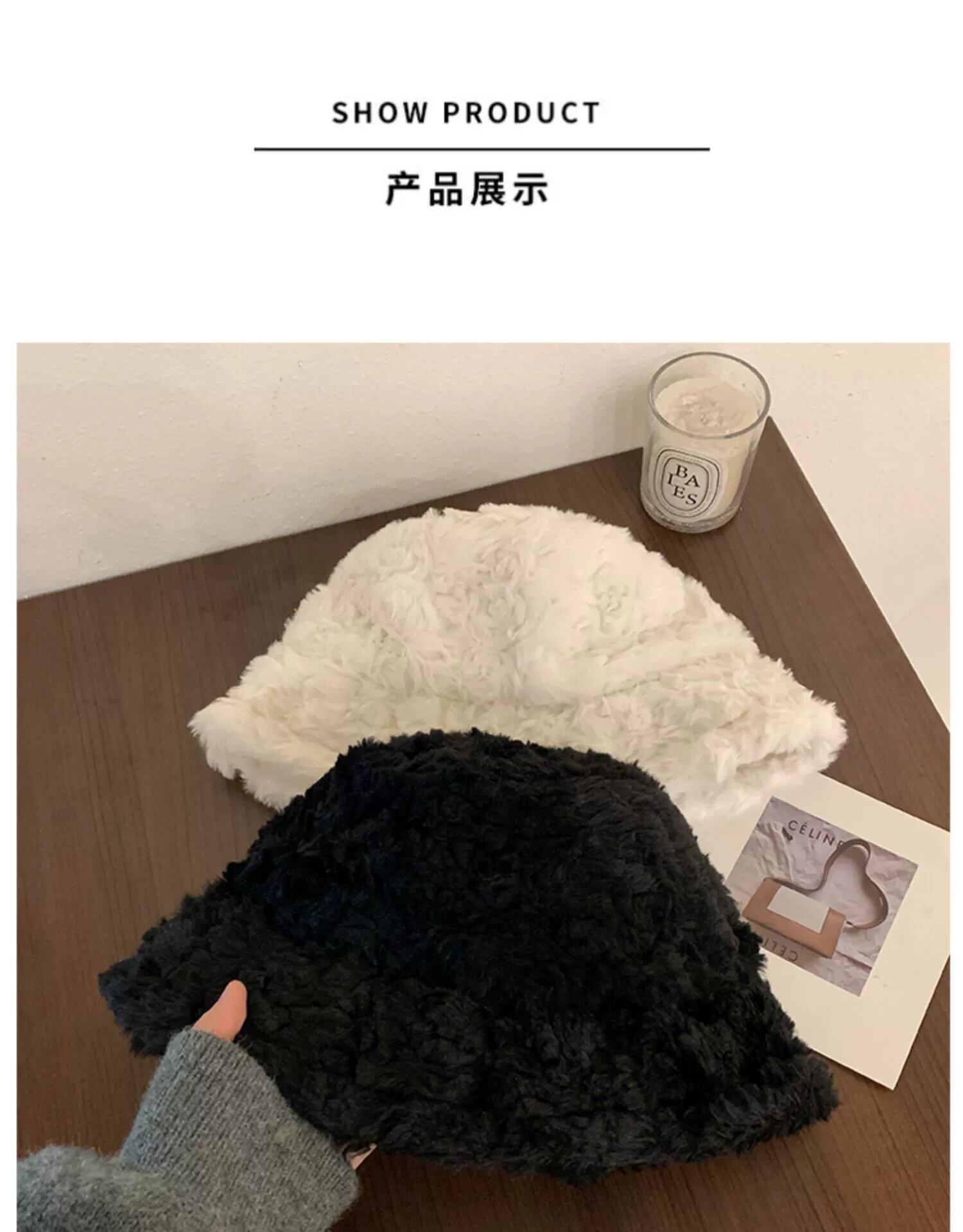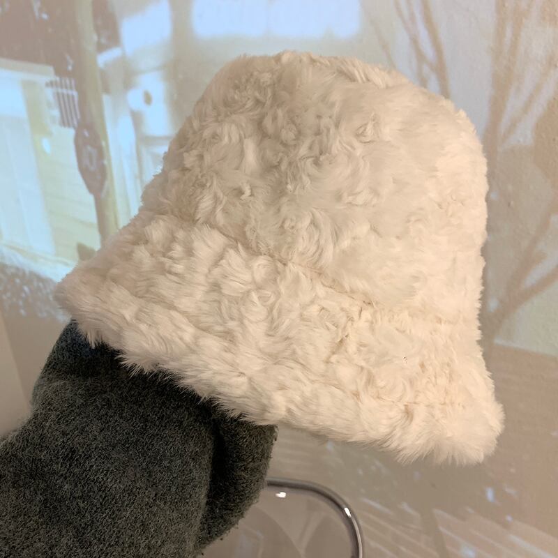 ese ぬいぐるみ漁師帽子女性の冬暖かい顔小さな耳保護バケットハット防寒オールマッチぬいぐるみ洗面器帽子 ウィンター 冬物 15dd27748076345
