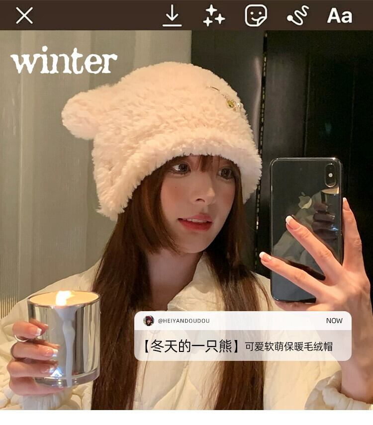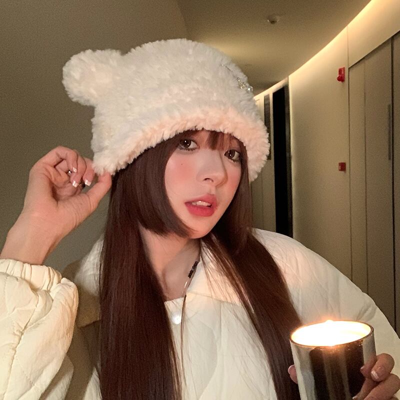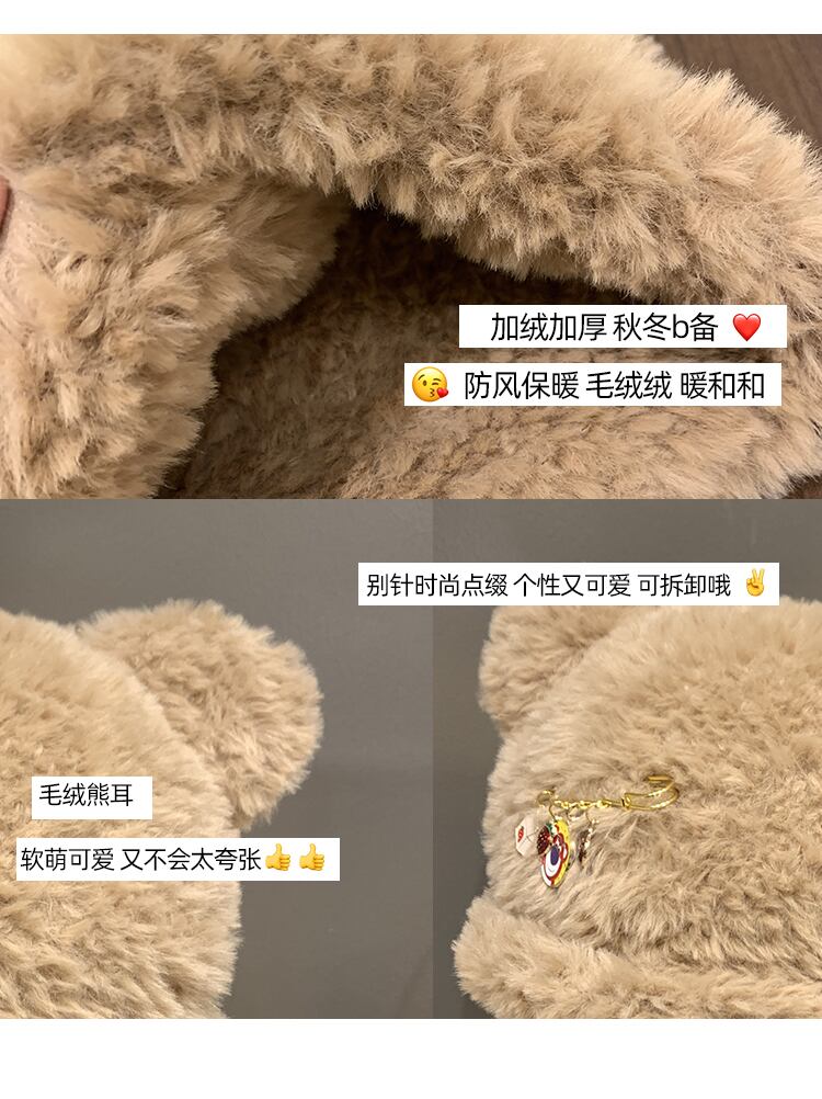 かわいいクマのぬいぐるみ帽子女性の秋と冬暖かく防寒耳保護ニットウール帽子インショーフェイス小さな盆地帽子 大人ガーリー スウィート キュート カジュアル オータム 秋物 ウィンター 冬物 15dd11021608968
