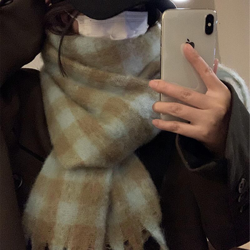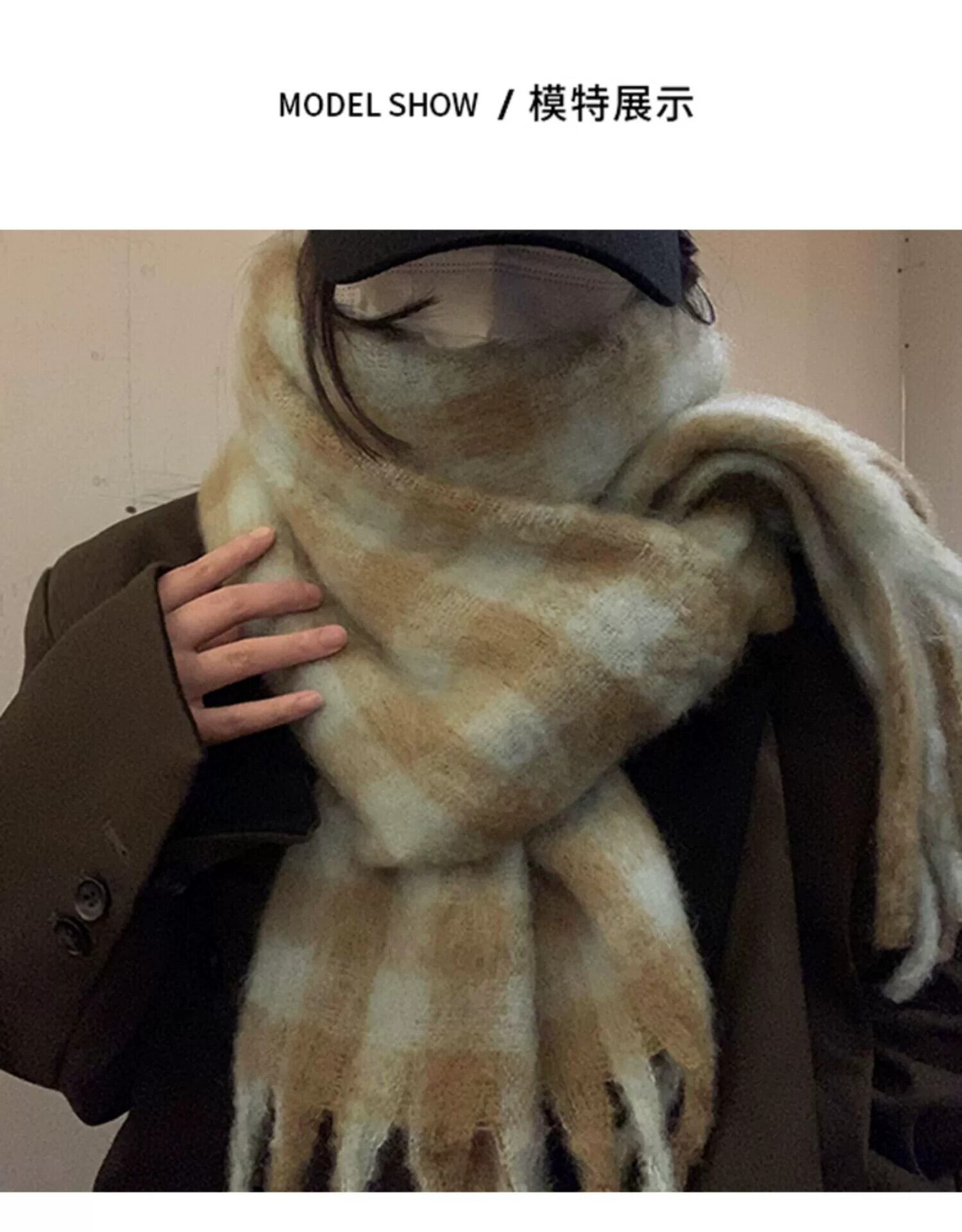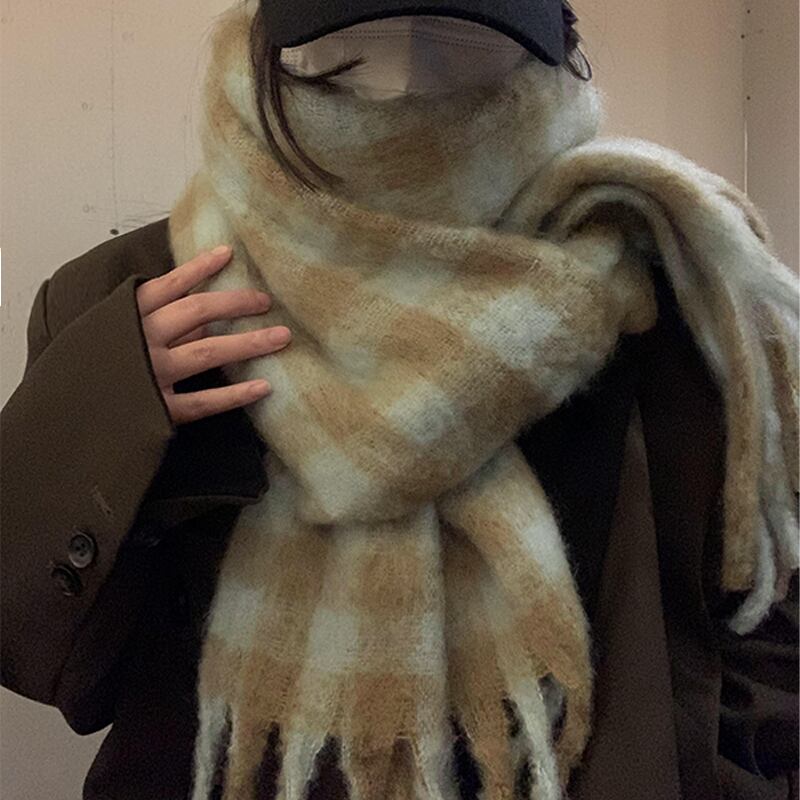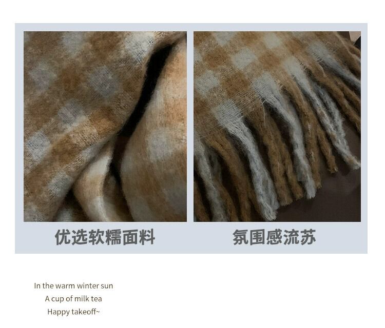 チェック柄スカーフ冬 2022 新バージョンのインモヘアスカーフ厚く暖かい学生ショール男性 ウィンター 冬物 15dd10474657570