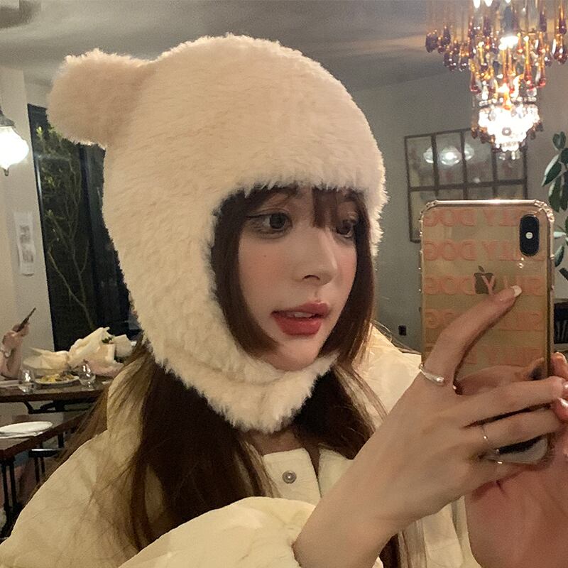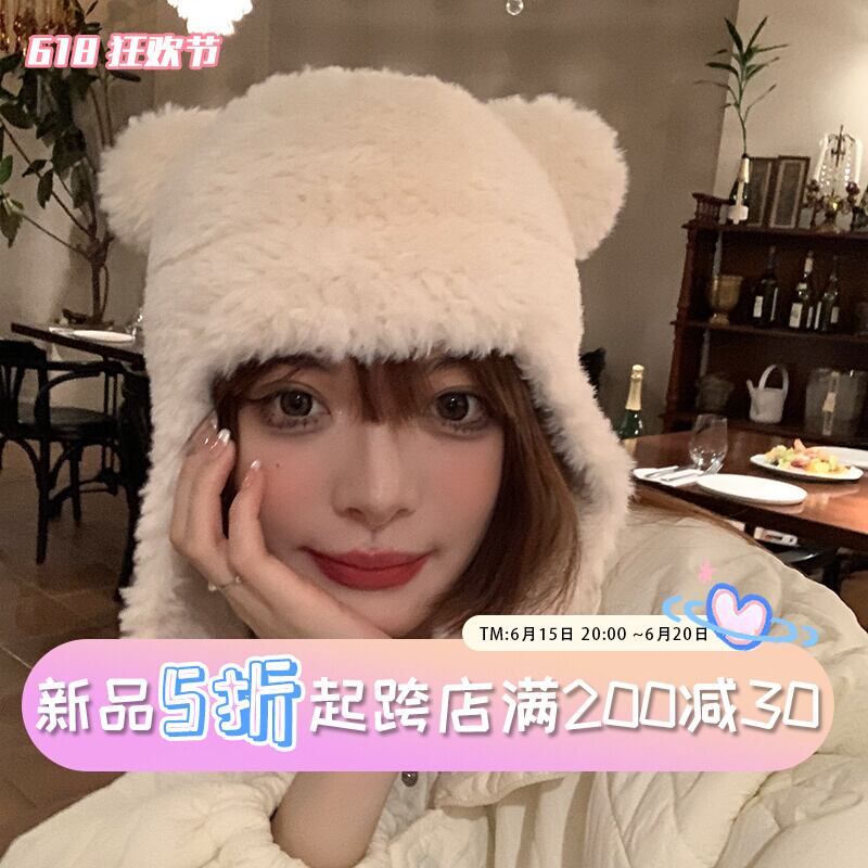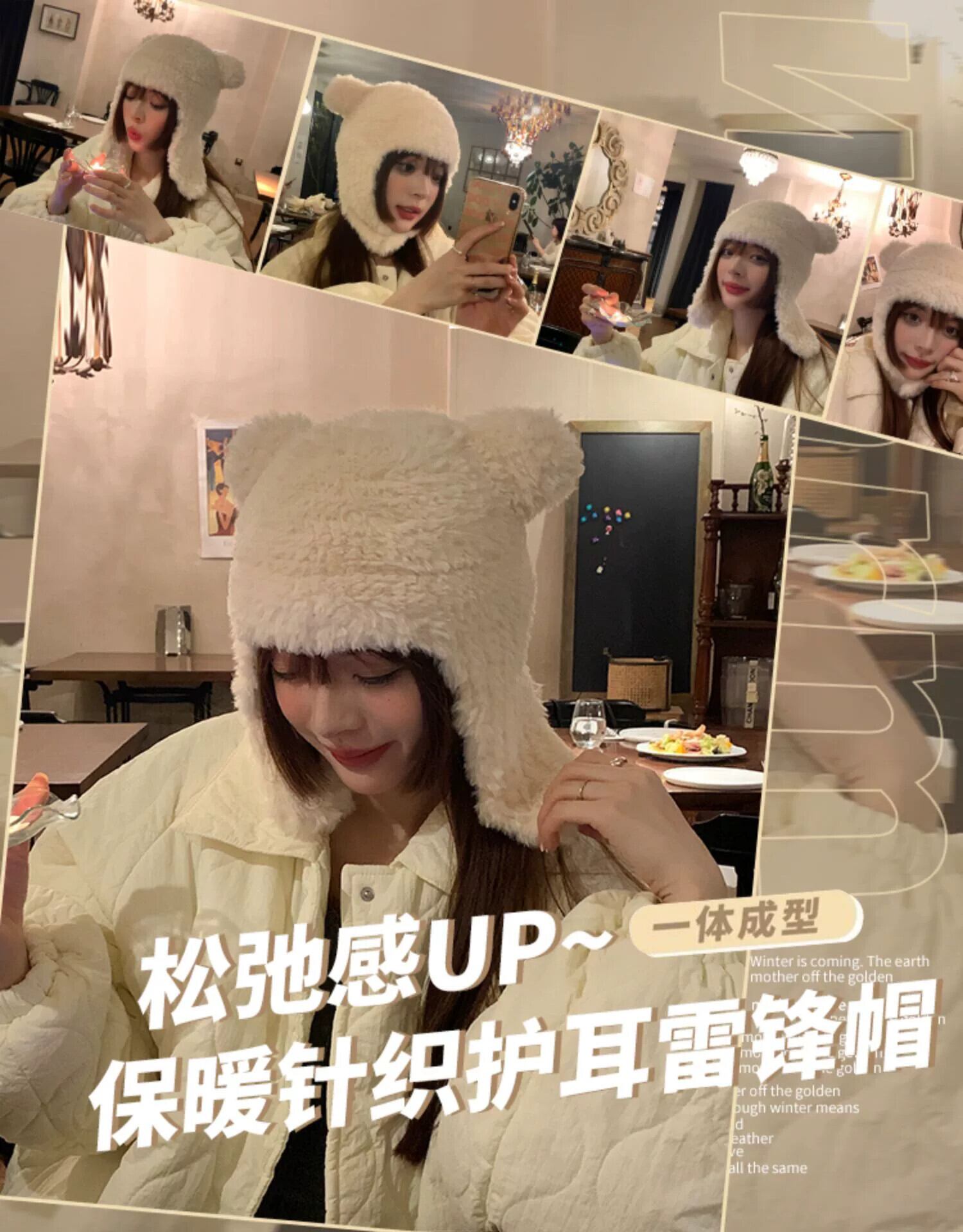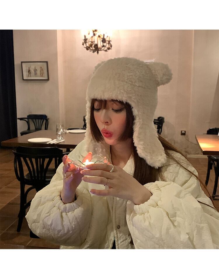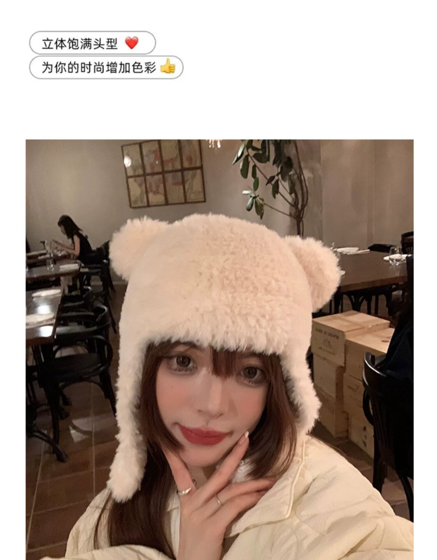 甘くてかわいいクマの耳ぬいぐるみ帽子女性の秋と冬雷峰帽子学生バイクに乗って暖かく、寒さを保つ耳保護帽子 大人ガーリー スウィート キュート カジュアル オータム 秋物 ウィンター 冬物 15dd77127183773