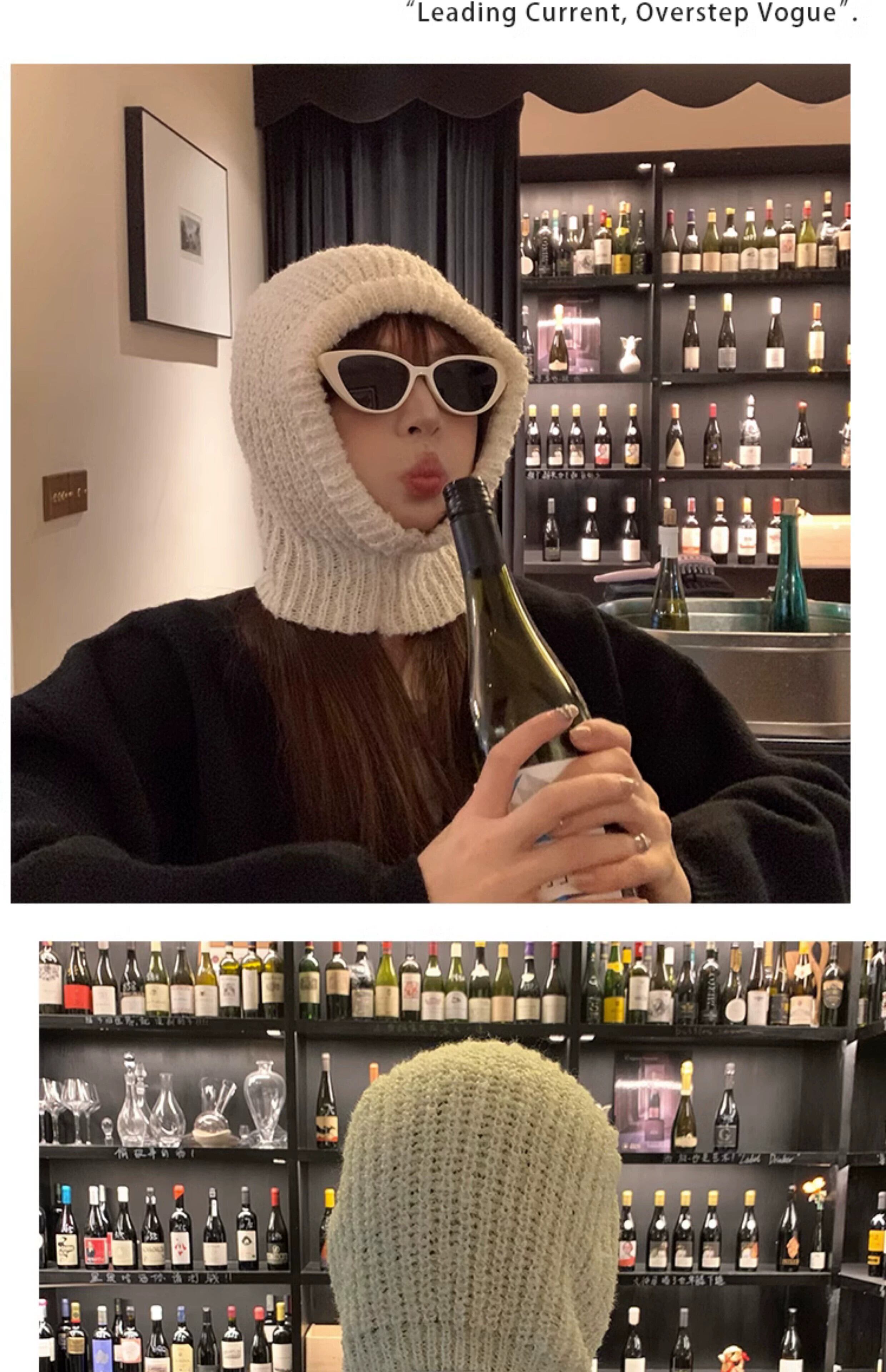 ネットレッドバラクラバ女性の秋と冬のファッションニットプルオーバー帽子冬肥厚暖かいネックガードウール帽子 オータム 秋物 ウィンター 冬物 15dd22746923271