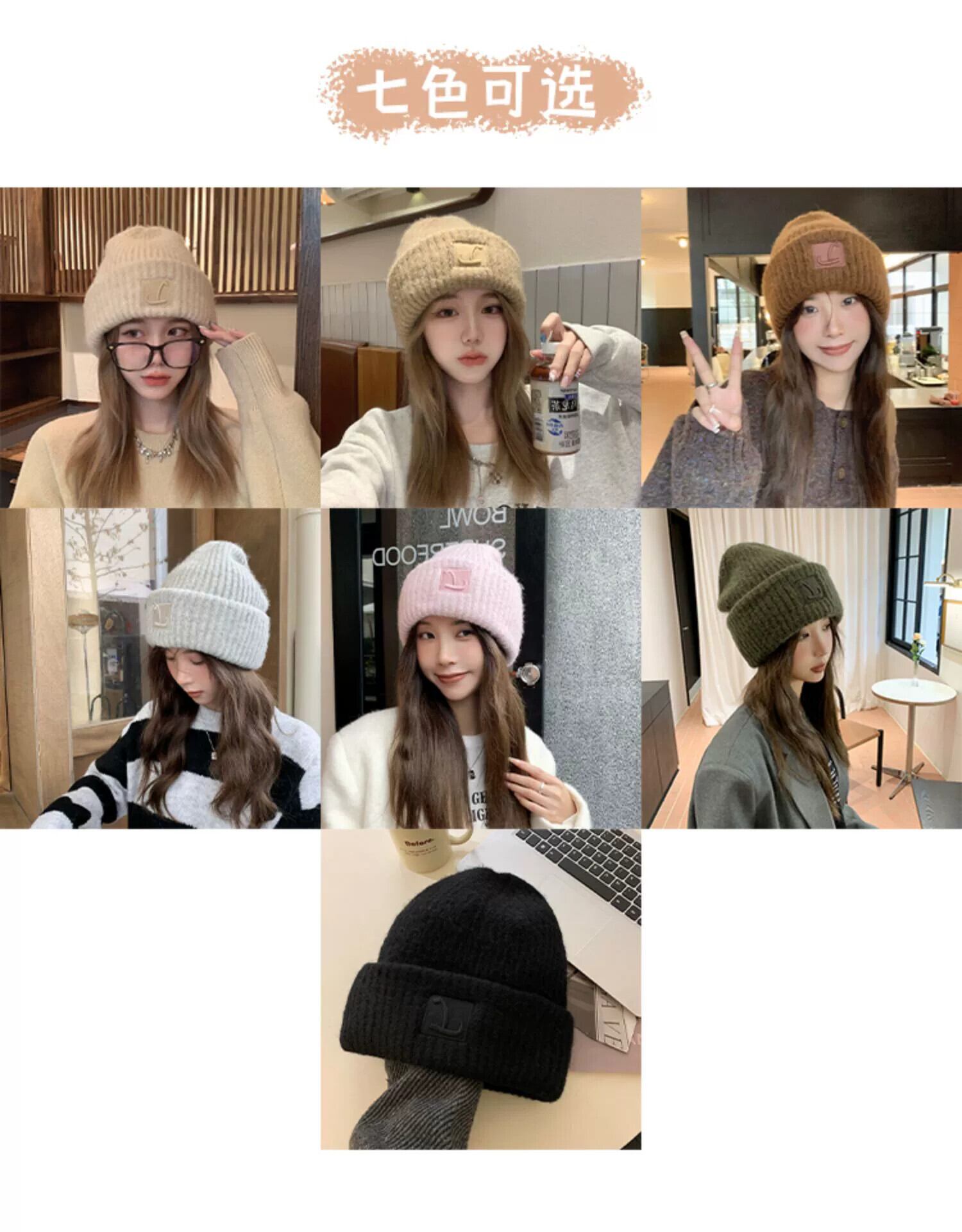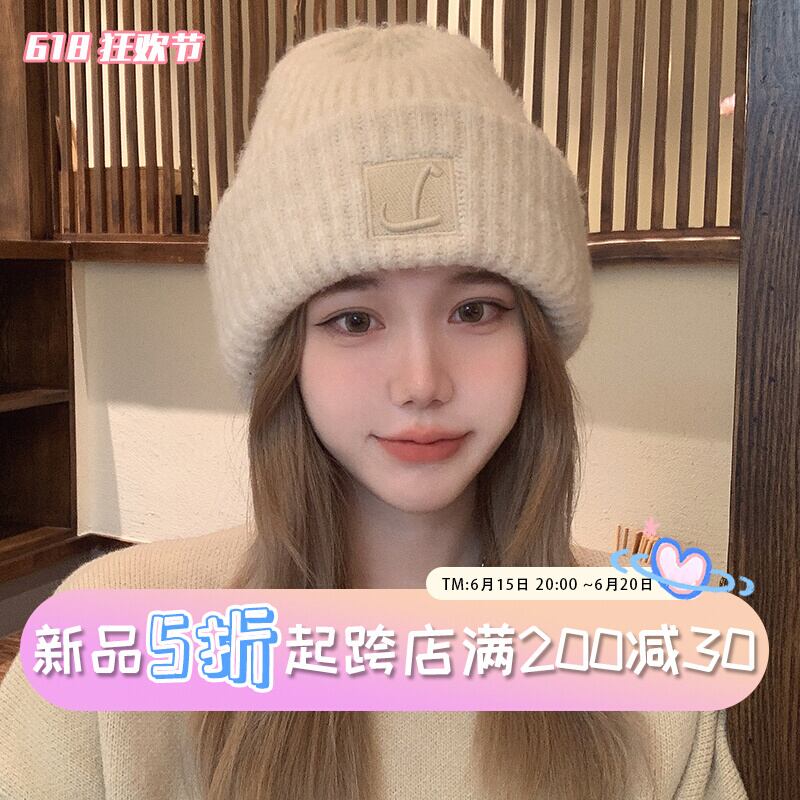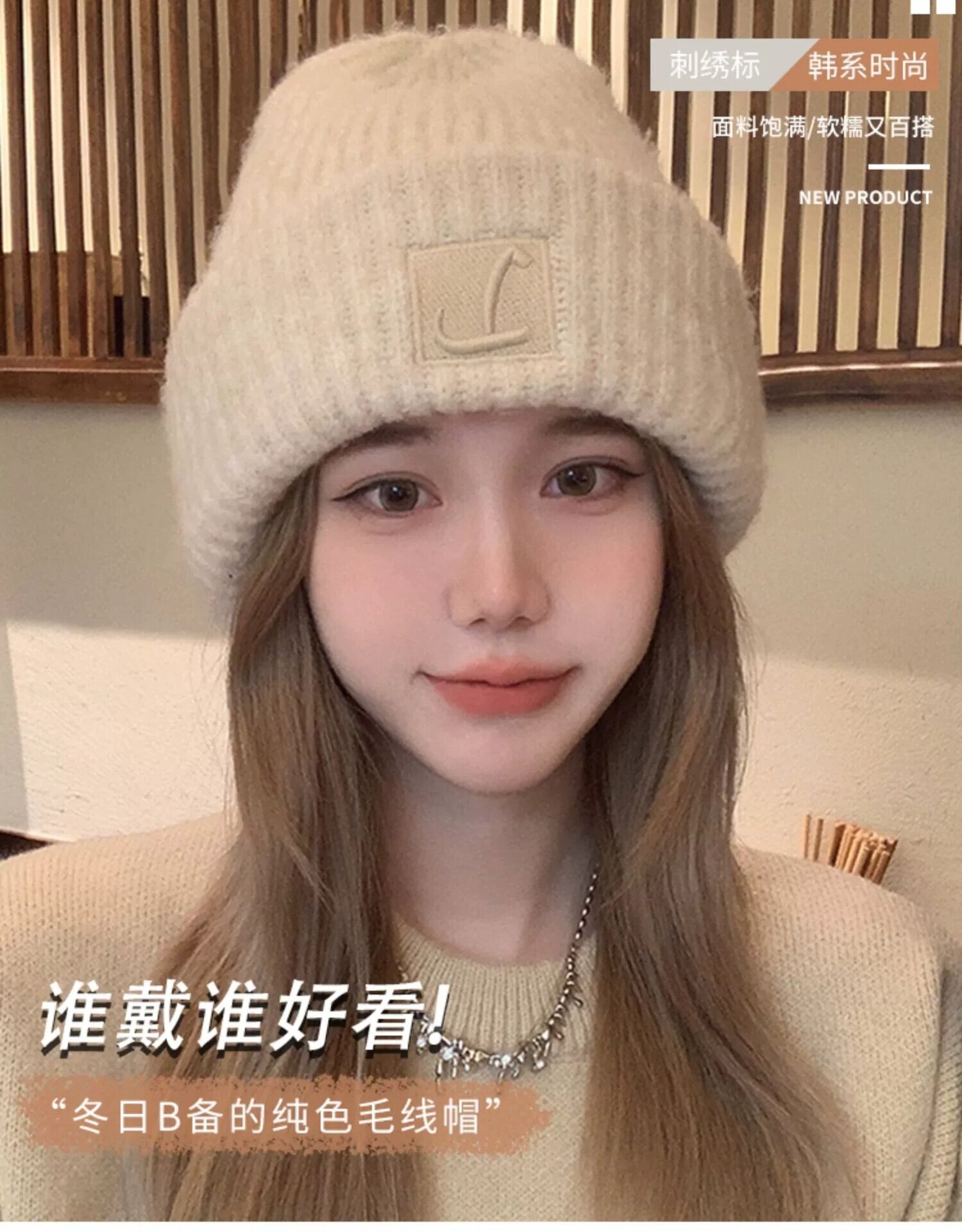 大きな頭囲ウール帽子女性の秋冬 2022 新しい緩い厚い暖かい防寒帽子ニット耳保護帽子小顔 オータム 秋物 ウィンター 冬物 15dd80734396086