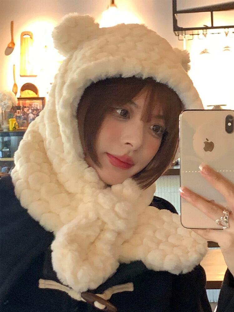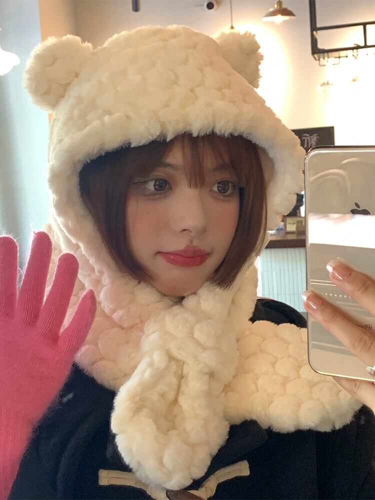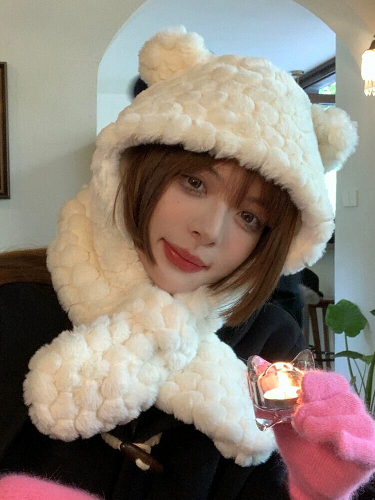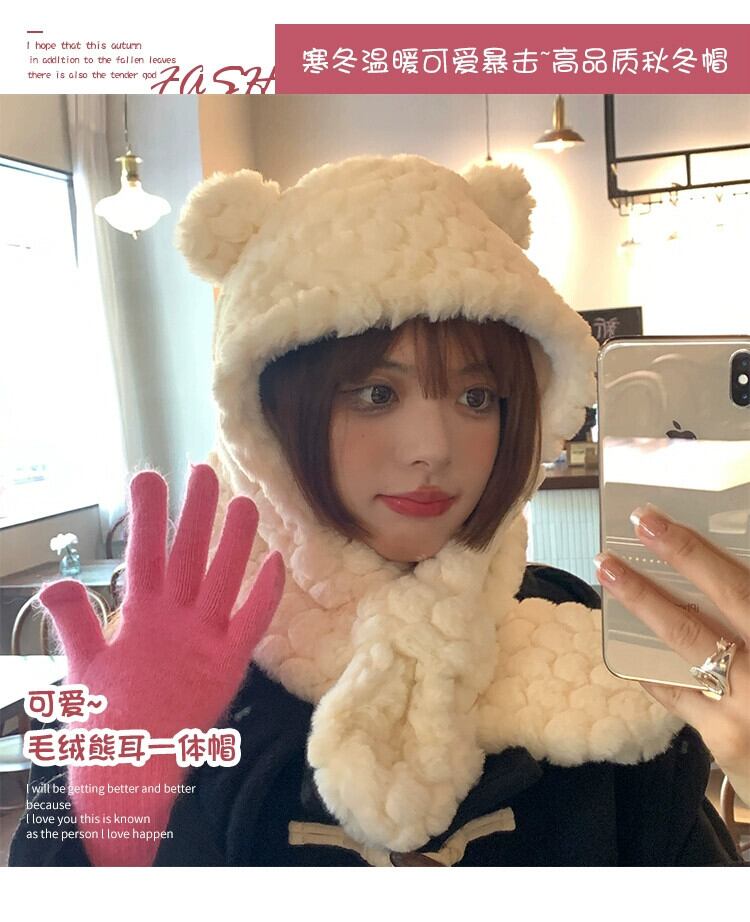 クマの帽子とスカーフオールマッチレディース秋と冬オールマッチ肥厚暖かい帽子冬豪華なスカーフプルオーバーイヤーマフトレンディ オータム 秋物 ウィンター 冬物 15dd15984144134