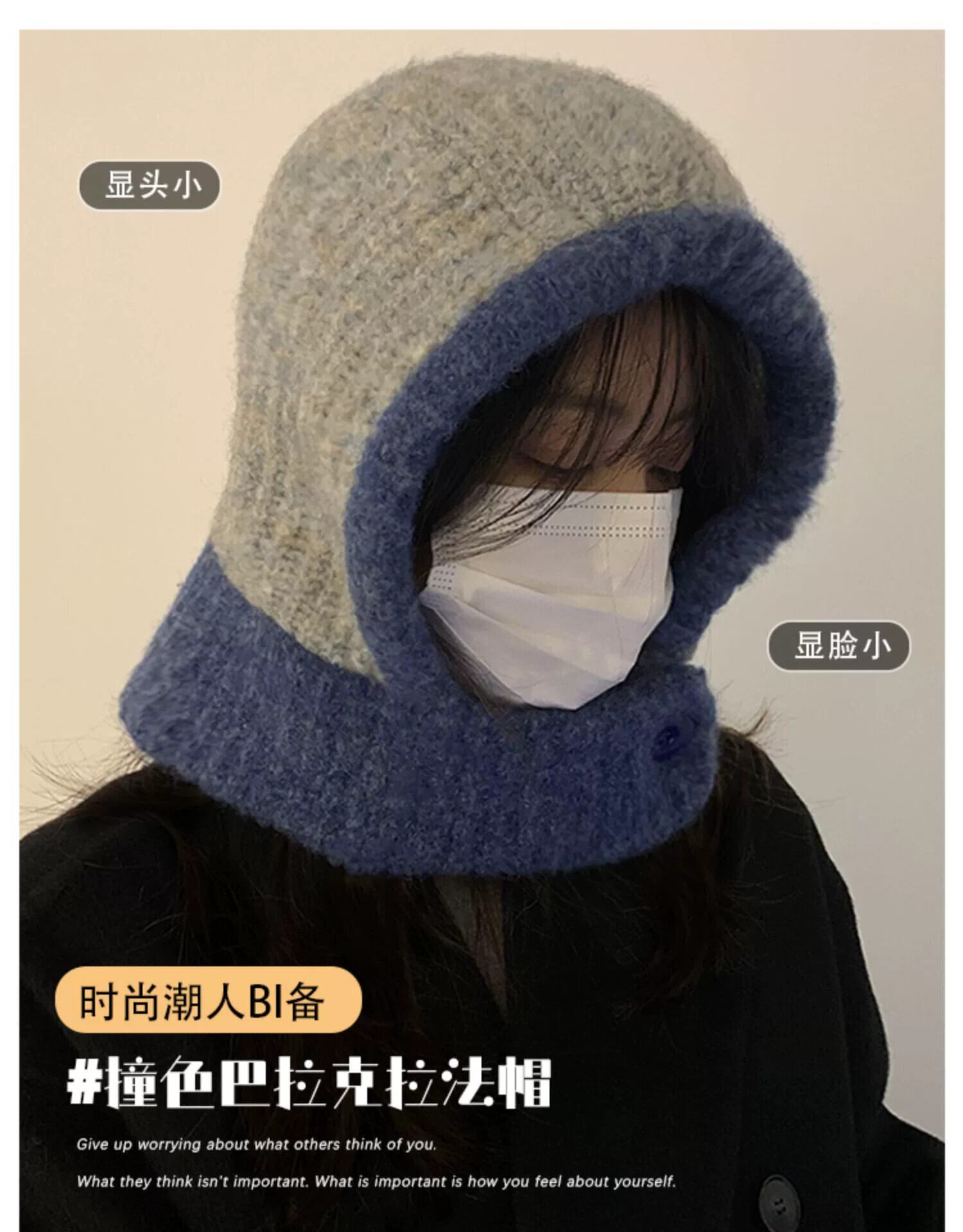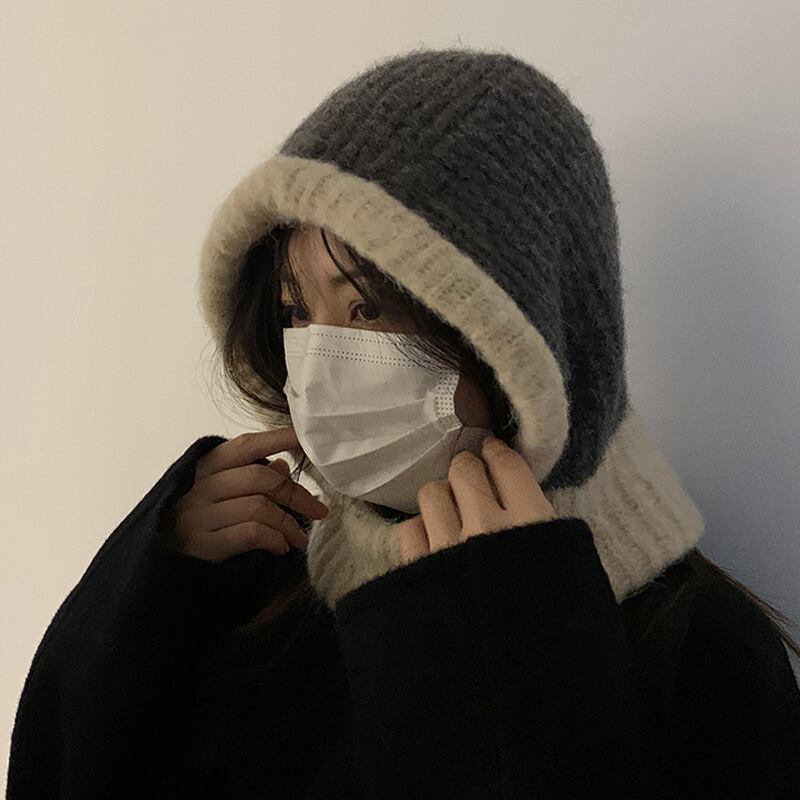 目出し帽帽子 ese スタイルの秋と冬の新しい暖かい帽子スカーフ統合女性耳保護ニット帽子潮雷峰帽子 オータム 秋物 ウィンター 冬物 15dd35501616961