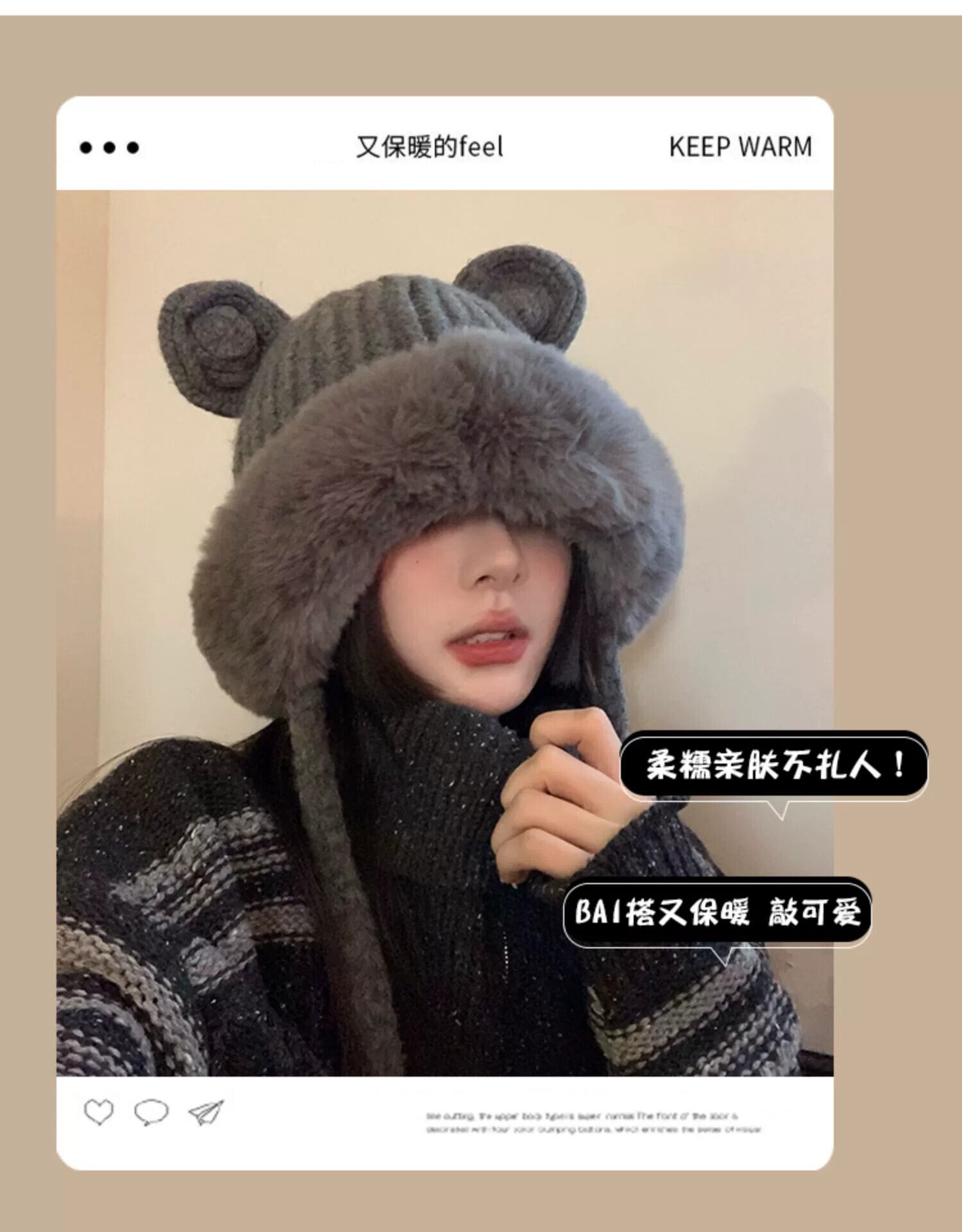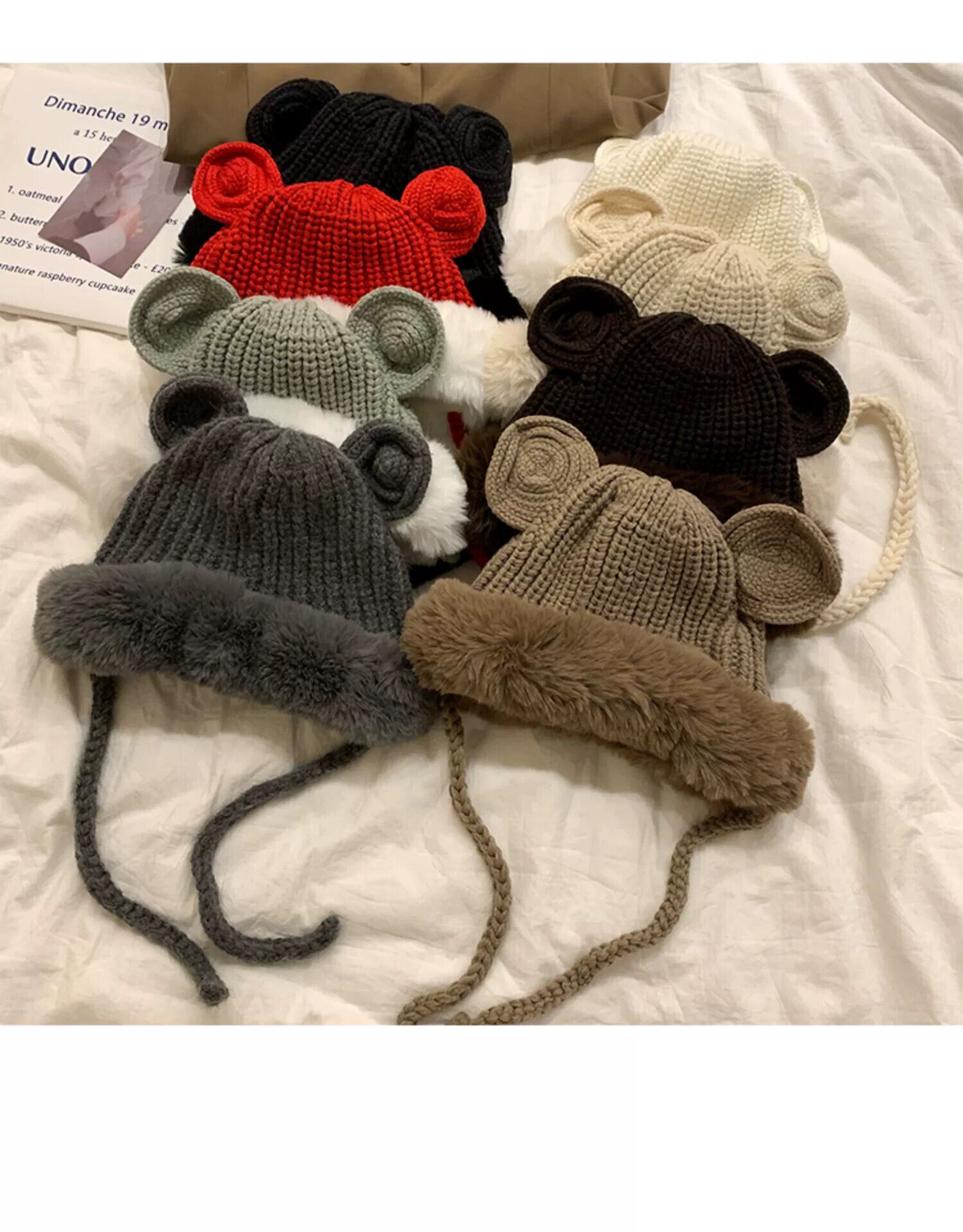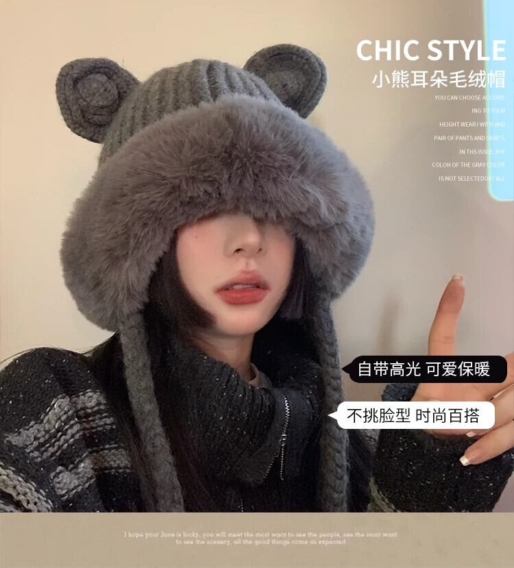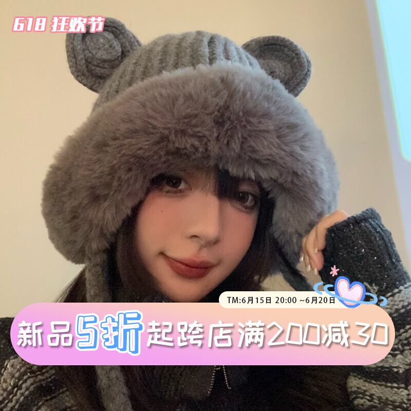 ese クマの耳雷峰帽子秋と冬かわいいぬいぐるみニットぬいぐるみスキーイヤーマフウール帽子トレンディ 大人ガーリー スウィート キュート カジュアル オータム 秋物 ウィンター 冬物 15dd91830064710