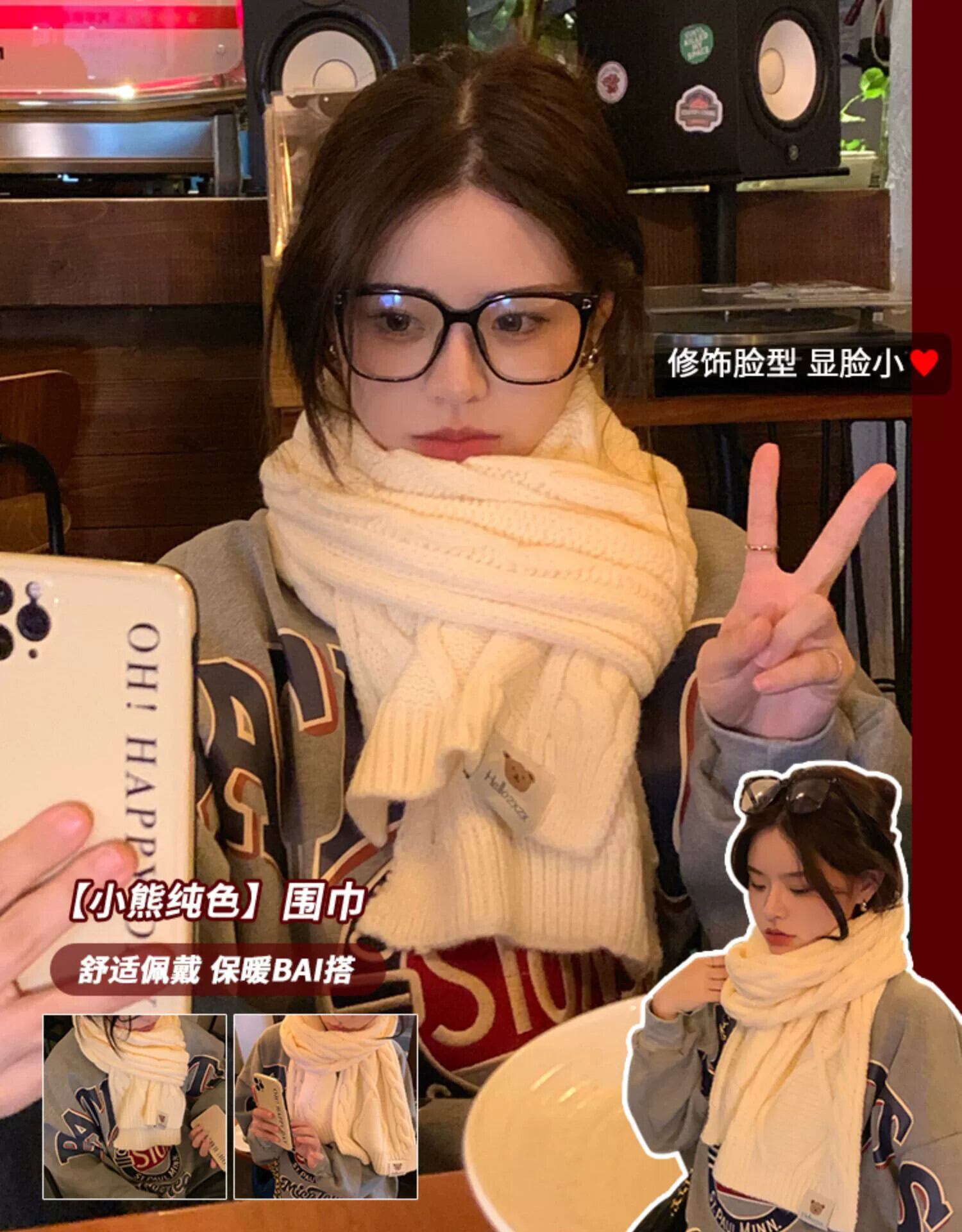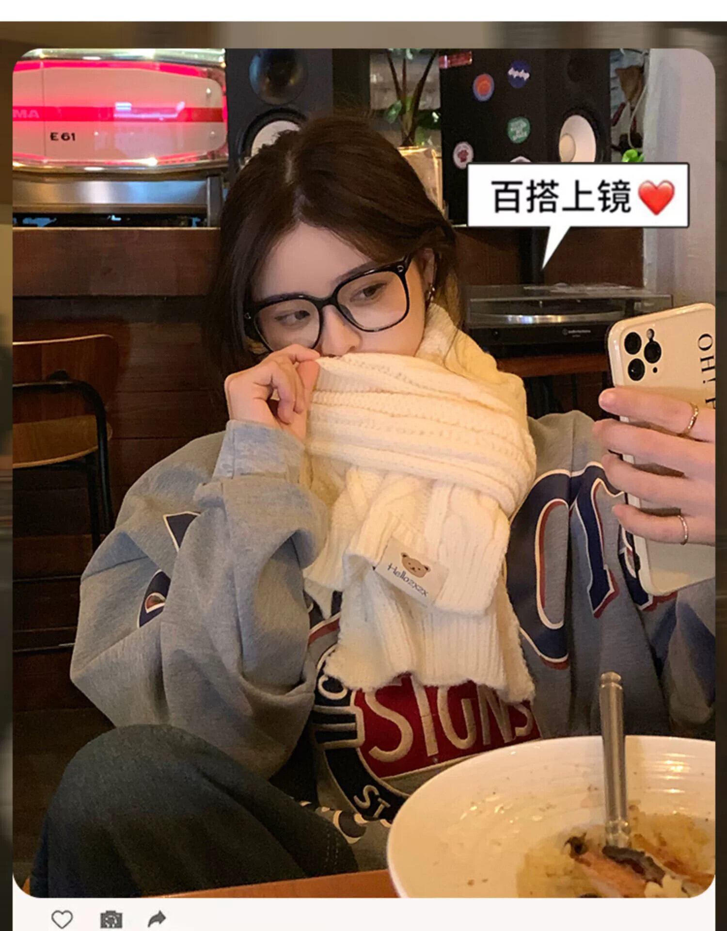 これらのかわいいクマツイストニットスカーフ女性の秋と冬暖かいオールマッチソリッドカラー学生カップルウールスカーフ 大人ガーリー スウィート キュート カジュアル オータム 秋物 ウィンター 冬物 15dd67807663387