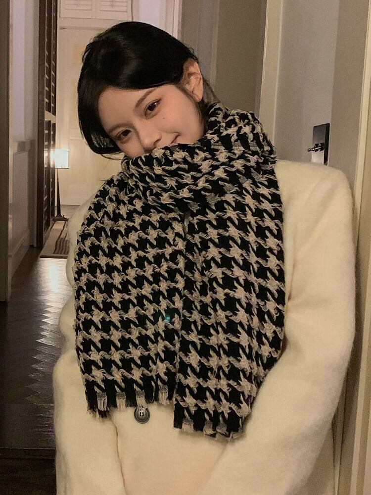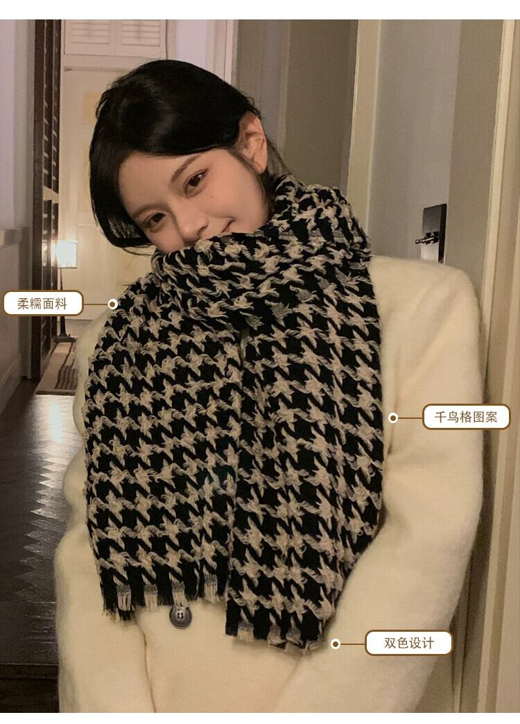手織り千鳥格子スカーフのバージョンの女性冬多用途デュアルユース大型ショール冬のチェック柄暖かいネックスカーフ男性 ウィンター 冬物 15dd63534529592