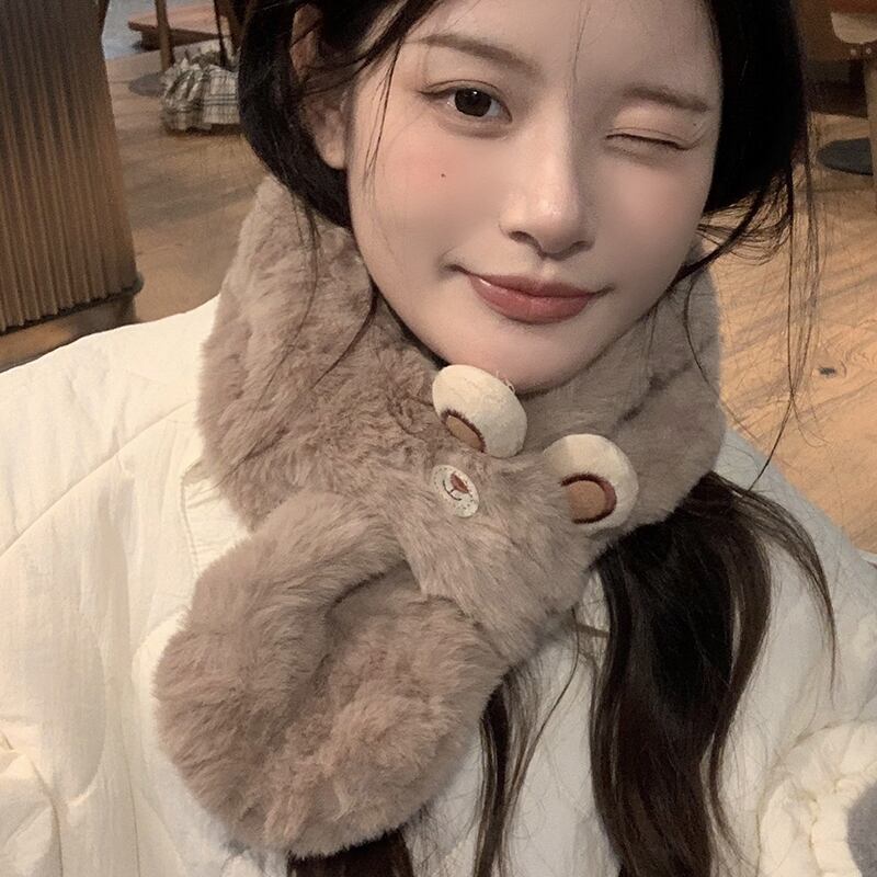 かわいい漫画のクマのぬいぐるみ小さなスカーフ女性冬バージョンオールマッチ厚い模造毛皮暖かいスカーフトレンディな 大人ガーリー スウィート キュート カジュアル ウィンター 冬物 15dd86587967780