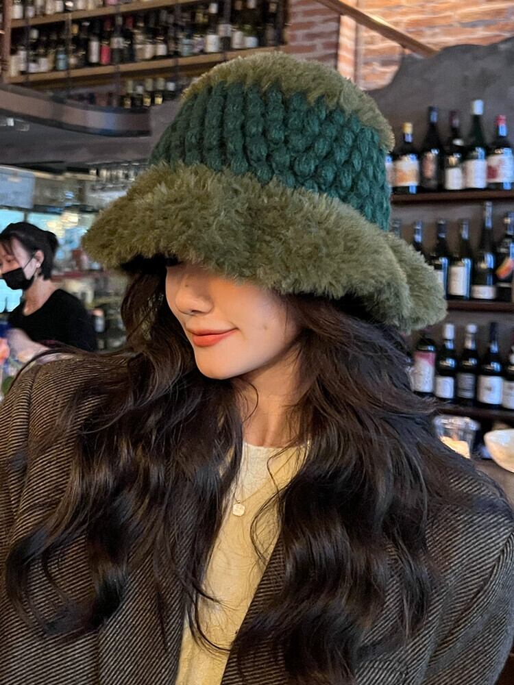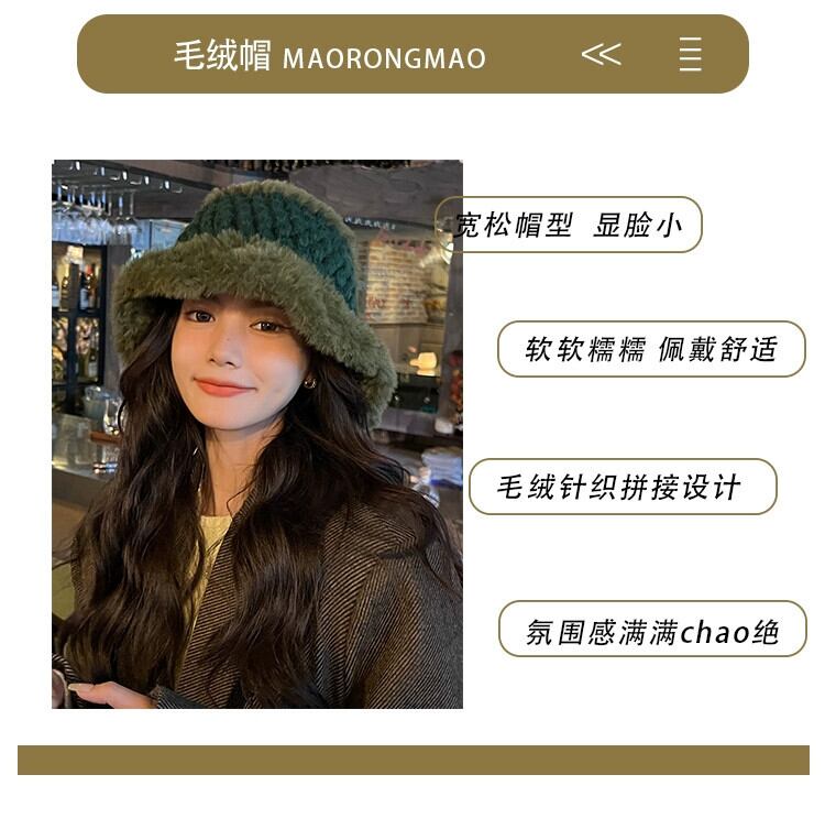 大きな頭囲を示す顔小さなウールの帽子女性の秋と冬肥厚豪華な耳の保護漁師の帽子冬暖かい厚いニット盆地帽子 オータム 秋物 ウィンター 冬物 15dd87724133775