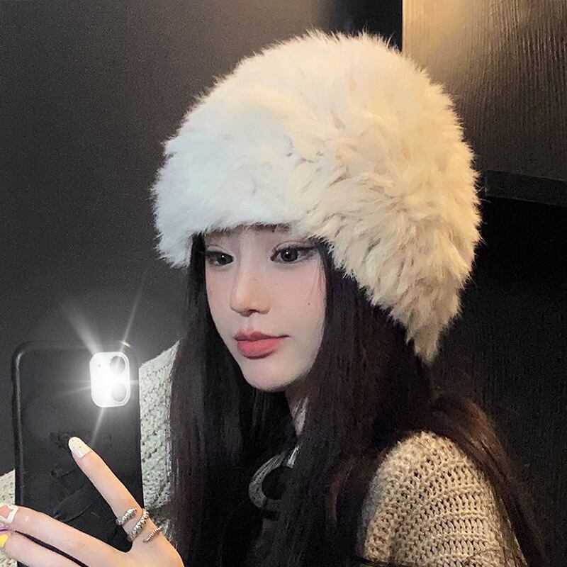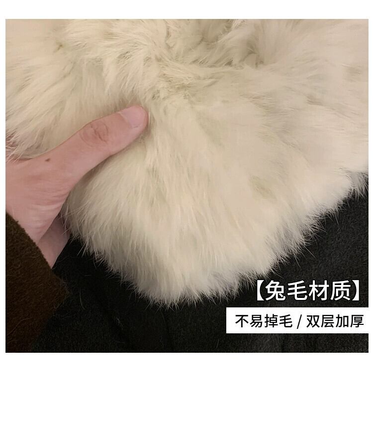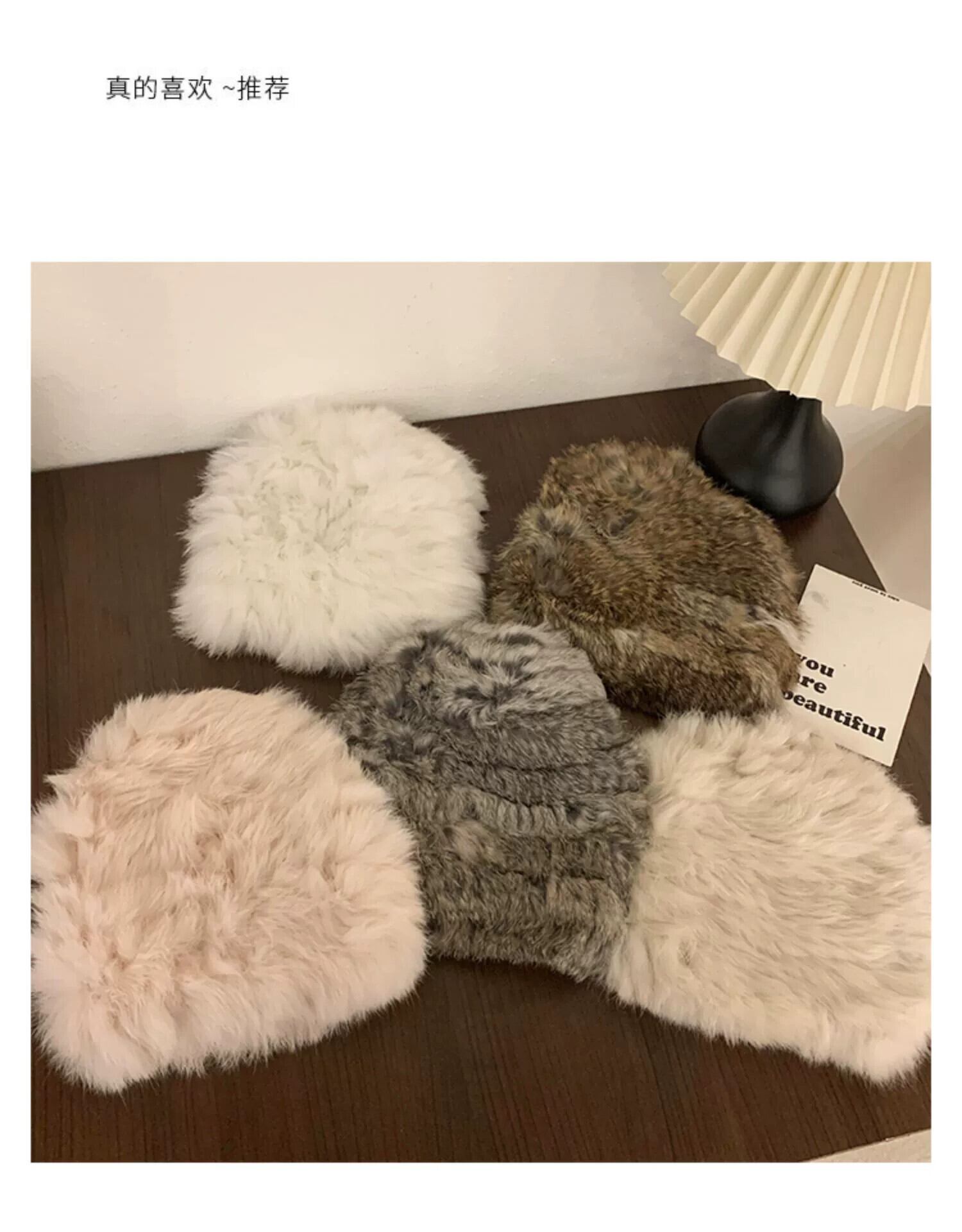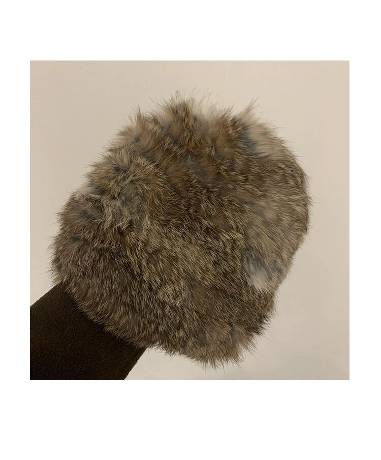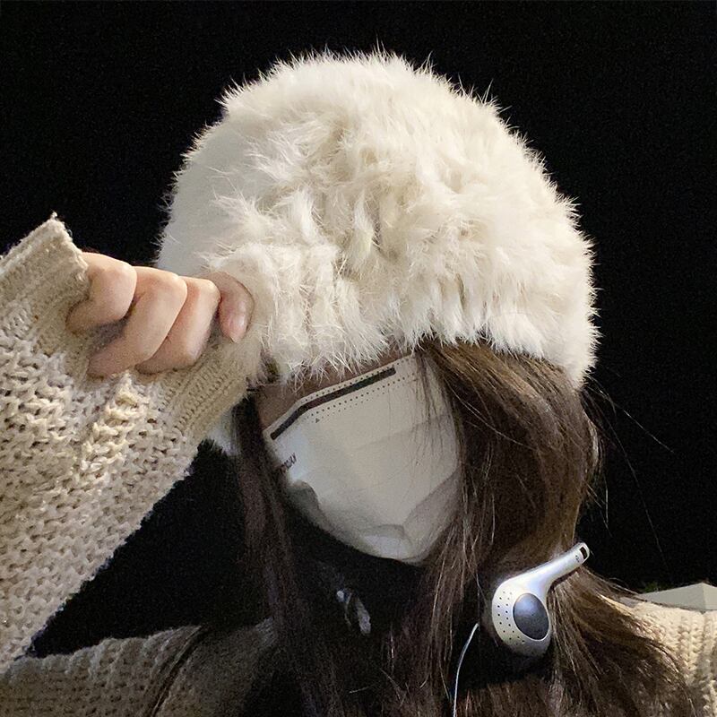 ラビットファーニット帽子女性の秋と冬の大きな頭囲毛皮ぬいぐるみ帽子暖かい耳保護バッグヘッドショーフェイス小さなウールの帽子 オータム 秋物 ウィンター 冬物 15dd5907899261