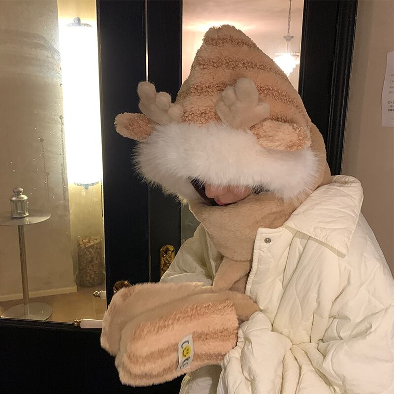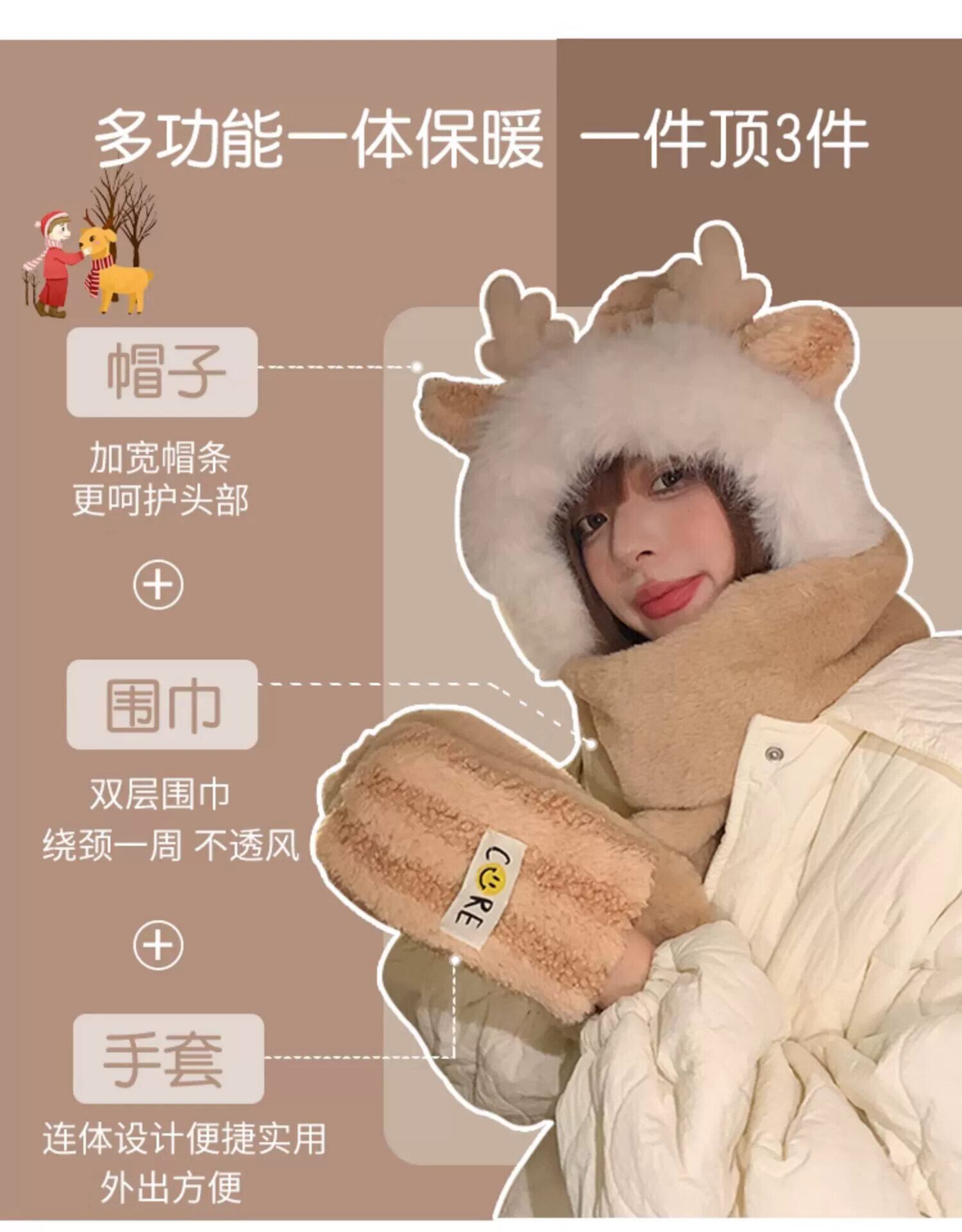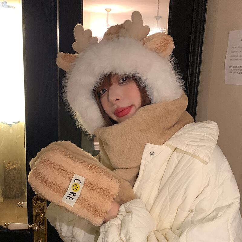 帽子 レディース 冬 暖かい かわいい よだれかけ ぬいぐるみ 帽子 クリスマス 鹿 スカーフ 手袋 1 つ 3 点セット オールマッチ 冬 大人ガーリー スウィート キュート カジュアル ウィンター 冬物 15dd55527669242