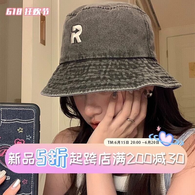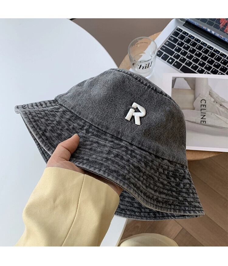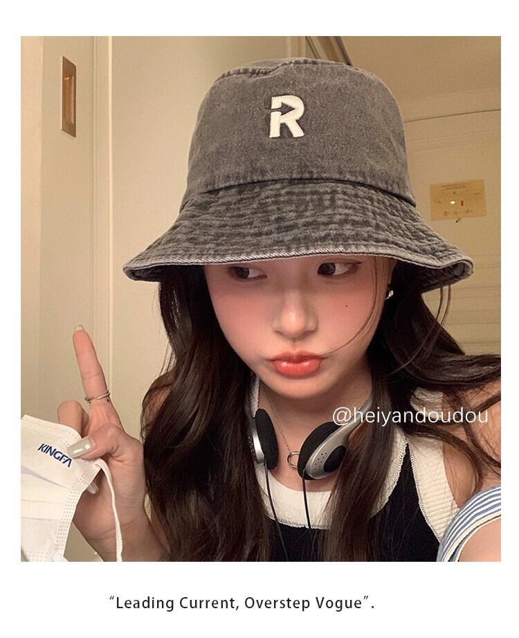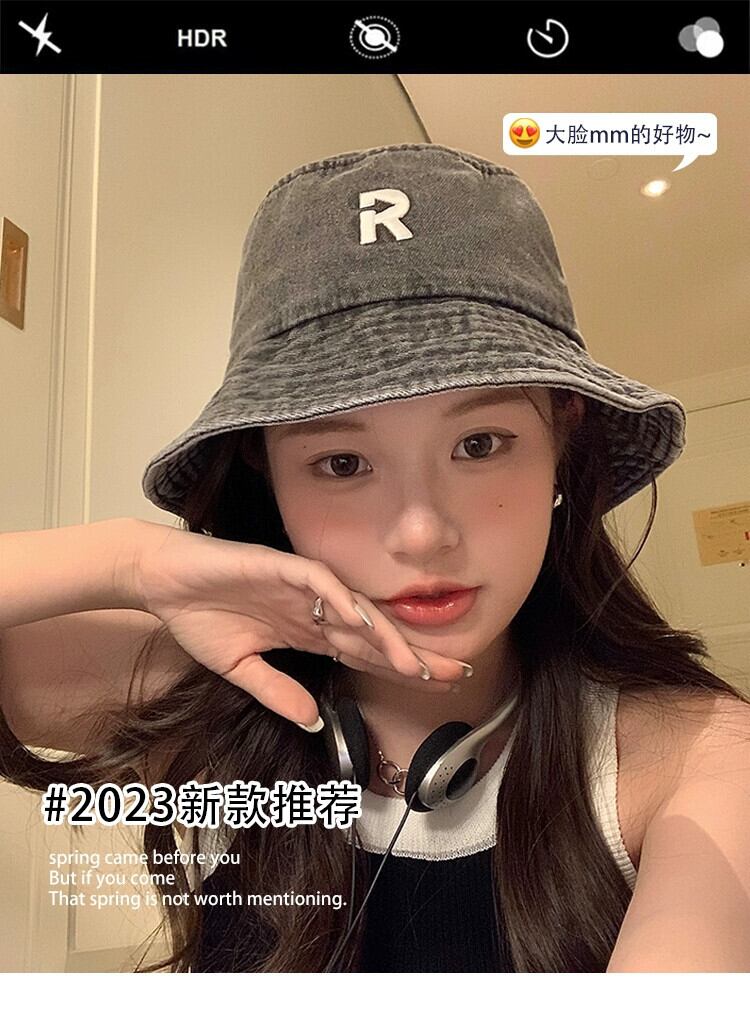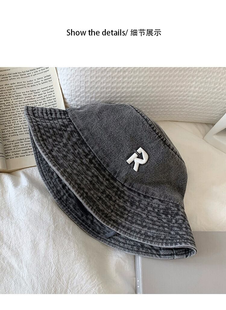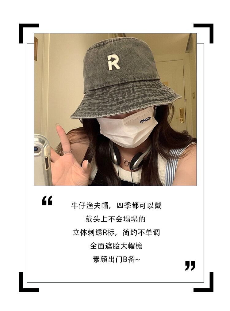 漁師の帽子の女性の文字刺繍バージョンは、小さな野生の洗浄デニム盆地帽子夏の日焼け止めつば広日よけ帽子を示しています サマー 夏物 15dd45745950602