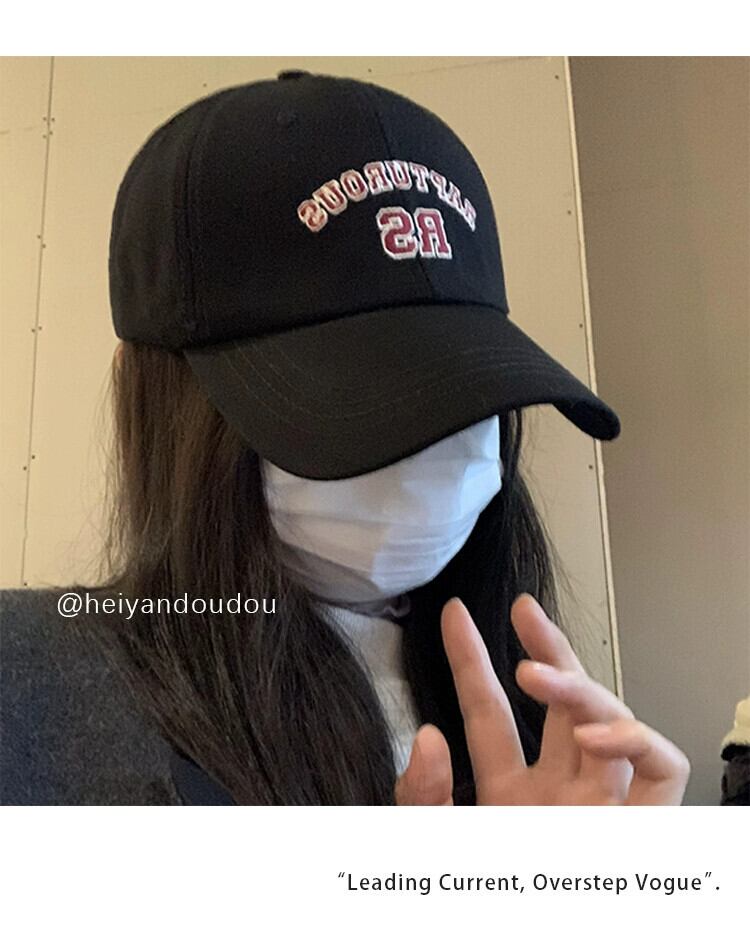 ese ソフトトップ野球帽女性のシンプルなオールマッチ文字刺繍ピークキャップつば広ショーフェイス小さなスポーツ帽子男性 レッド 15dd21229166627