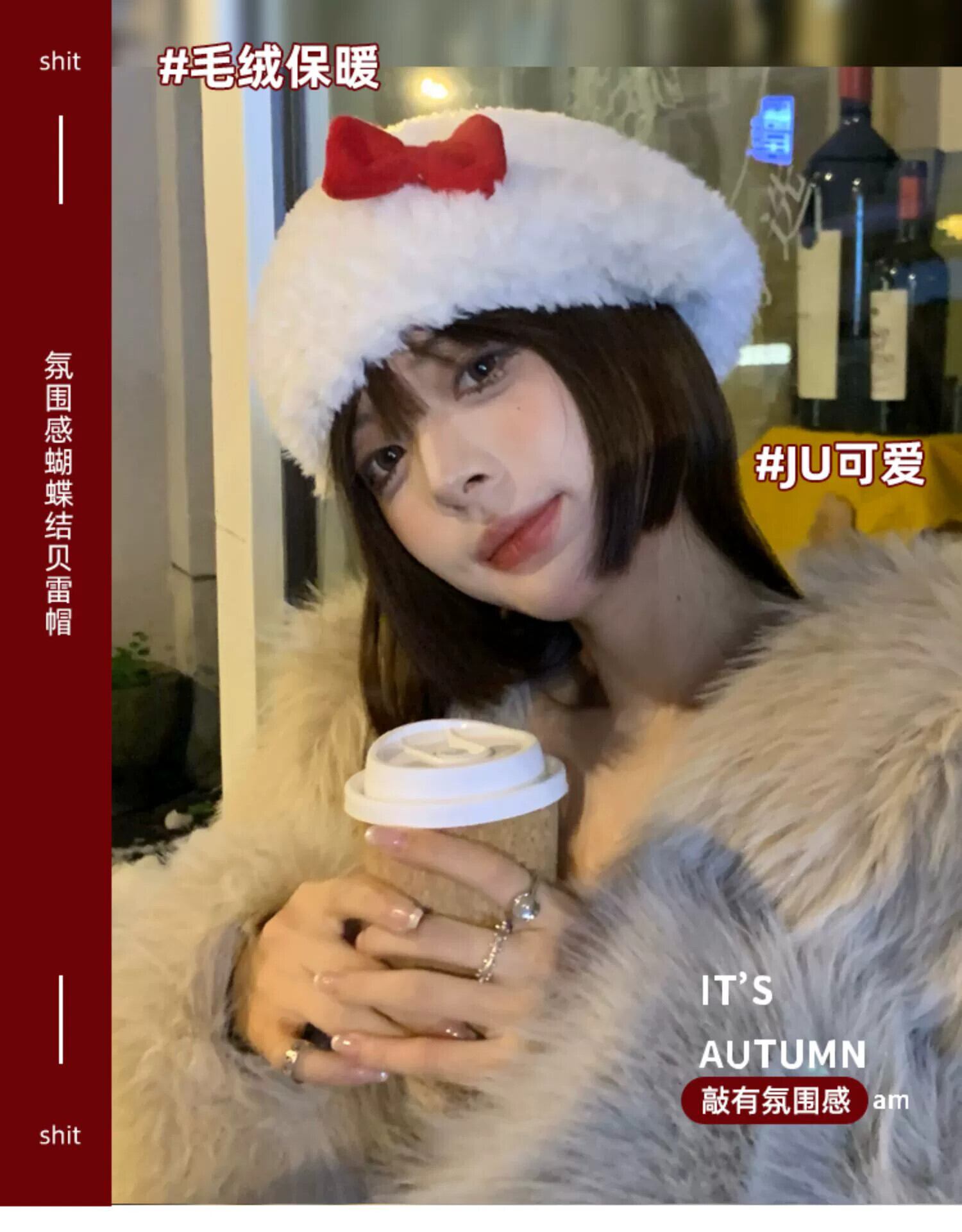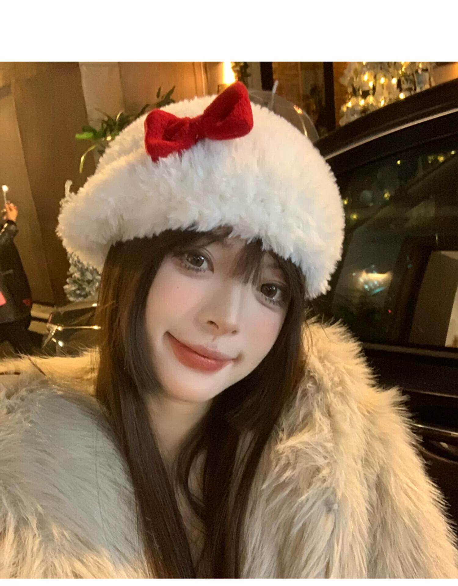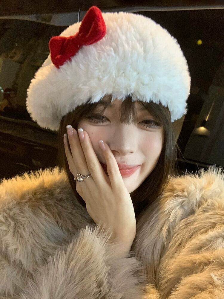 赤いリボンぬいぐるみ帽子女性の秋冬 2022 新しいかわいい顔の小さなウールの帽子クリスマス レッド 大人ガーリー スウィート キュート カジュアル オータム 秋物 ウィンター 冬物 15dd61482625871