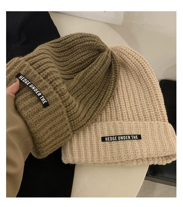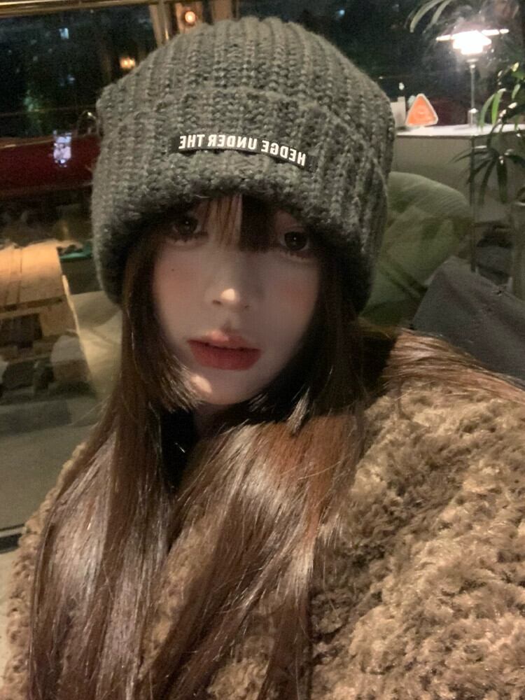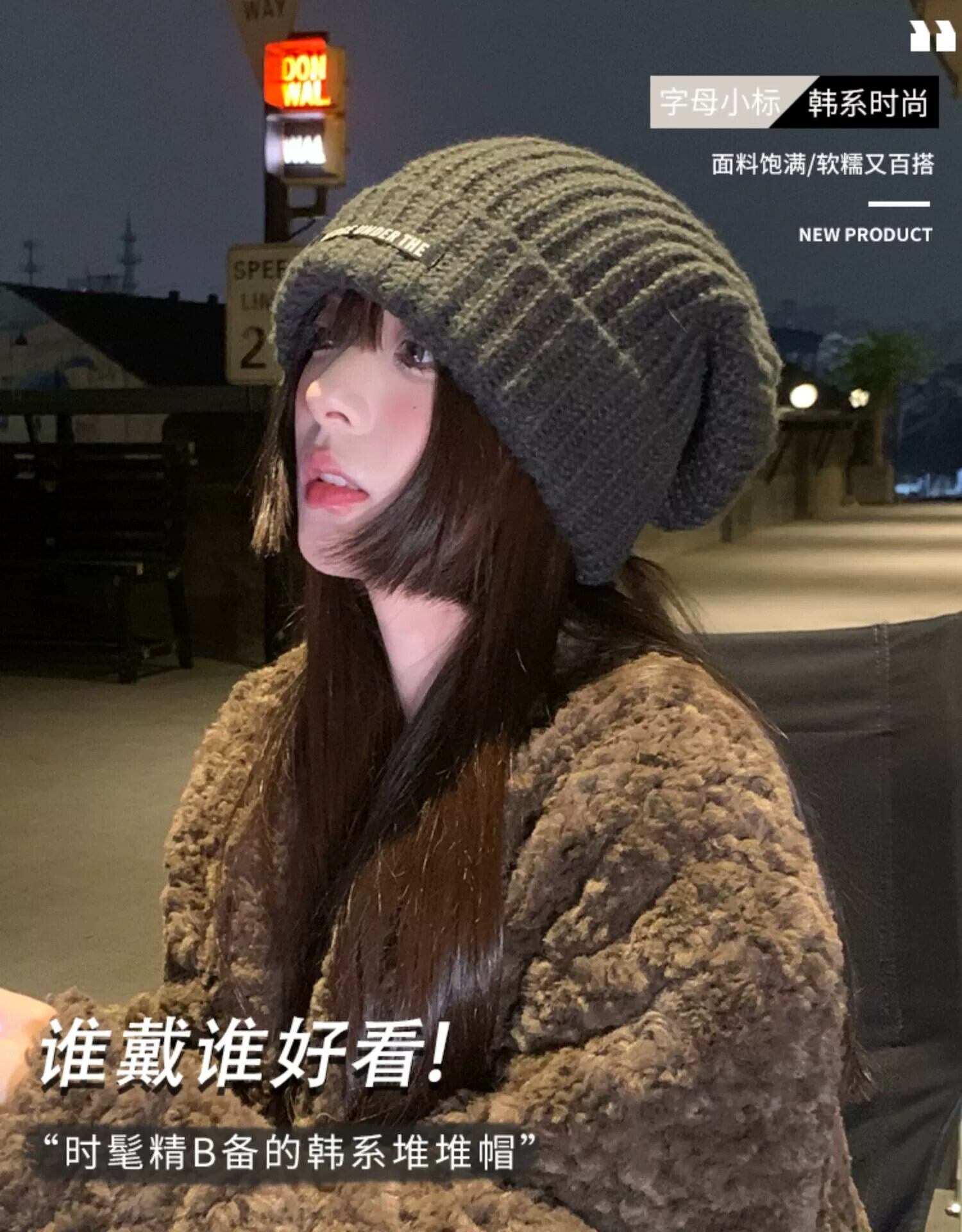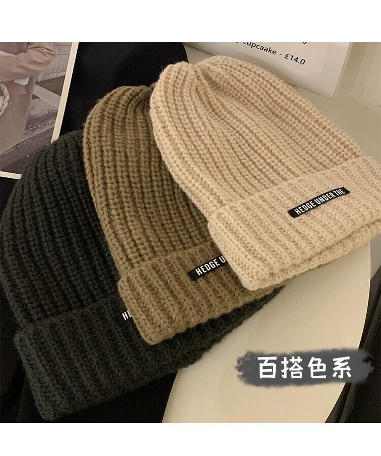 これらの大きな頭囲ウールの帽子女性の秋と冬のショーフェイス小さな暖かい耳保護ニット帽子ルーズヒープパイルコールドハット男性 オータム 秋物 ウィンター 冬物 15dd41057690019