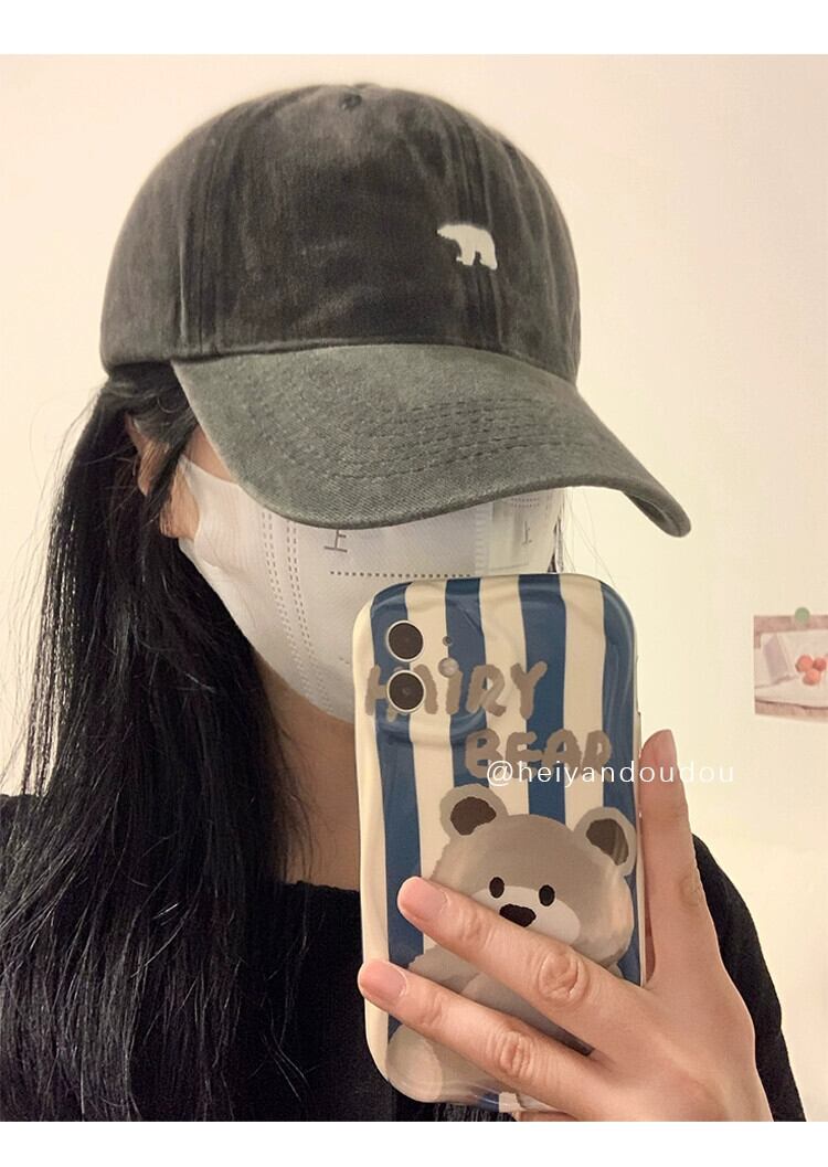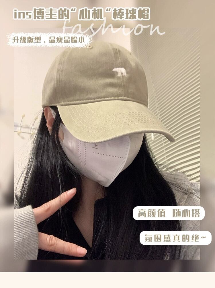 アメリカンレトロ野球帽女性の顔小さなソフトトップシロクマサンシェード日焼け止め帽子 2023 新しいトレンディなひさしキャップ 15dd89555105233