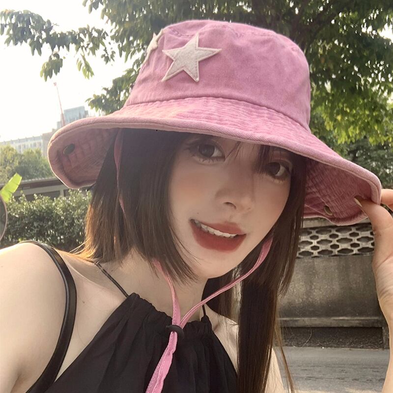 ピンクの漁師の帽子女性の夏のレトロな屋外登山帽子サンシェード日焼け止めキャンプ登山西部のカウボーイハット サマー 夏物 15dd16744539825