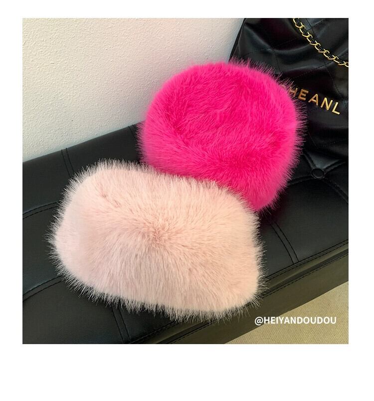 イミテーションファーぬいぐるみ帽子女性の秋と冬のeseスタイルの大きな頭囲を厚くして暖かく、防寒性を保ち、耳を保護する小さな顔の漁師の帽子 オータム 秋物 ウィンター 冬物 15dd59643766352
