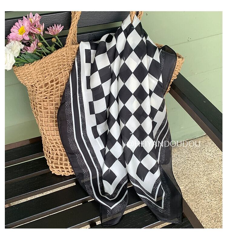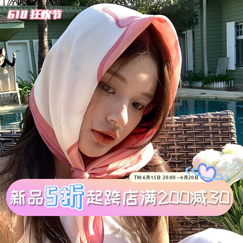 春と夏の新日焼け止めプリントシルクスカーフ女性の包頭サンシェードショール小さな正方形のスカーフファッションハイエンドセンスヘアロープヘッドバンド潮 スプリング 春物 サマー 夏物 ヘアバンド ヘアアクセサリー スクウェア 15dd16762039043