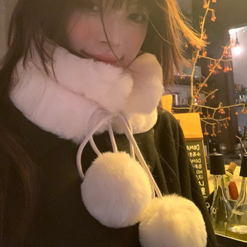 毛皮の襟スカーフ女性の冬バージョンオールマッチかわいいファーボールぬいぐるみスカーフ厚く暖かいイミテーションファー冬 大人ガーリー スウィート キュート カジュアル ウィンター 冬物 15dd46718227940