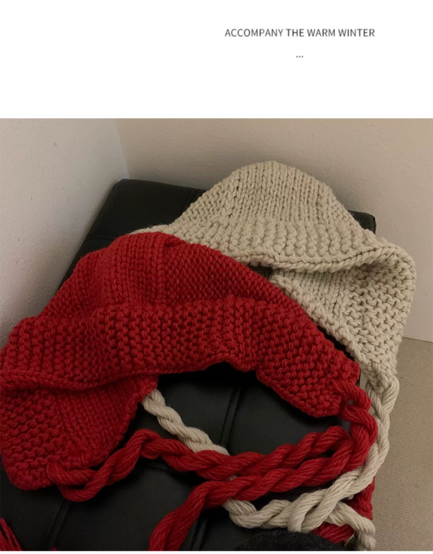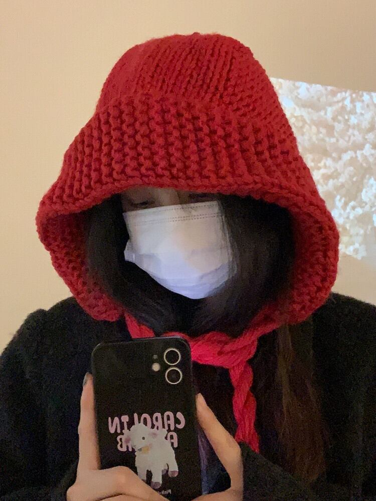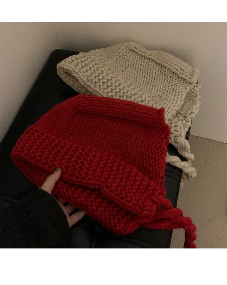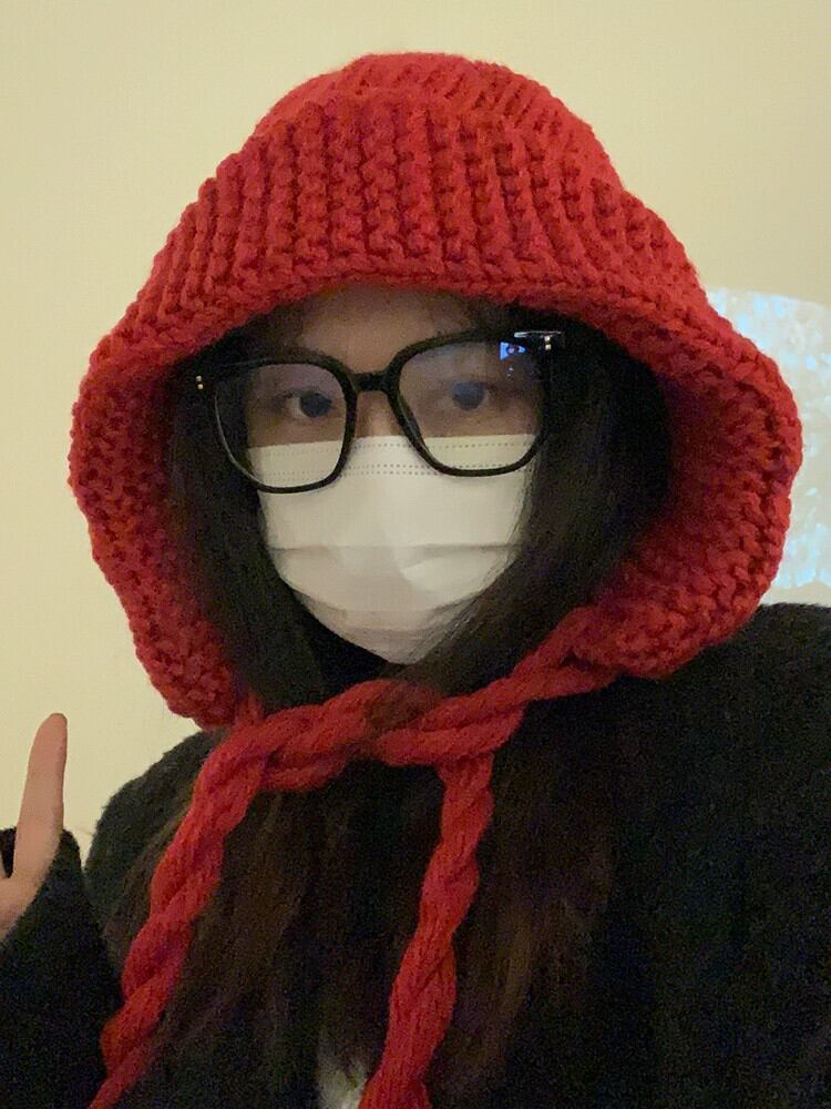 赤い年帽の女性の冬の新しい暖かいウールのかわいいニットプルオーバー帽子手作りイヤーマフは小顔を見せます レッド 大人ガーリー スウィート キュート カジュアル ウィンター 冬物 15dd35424858615