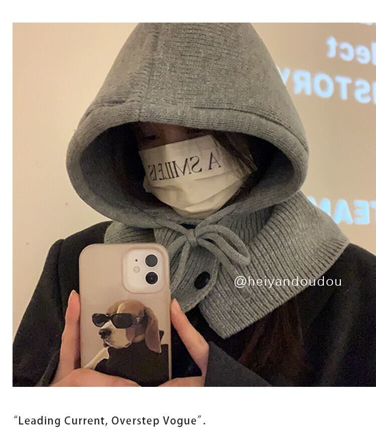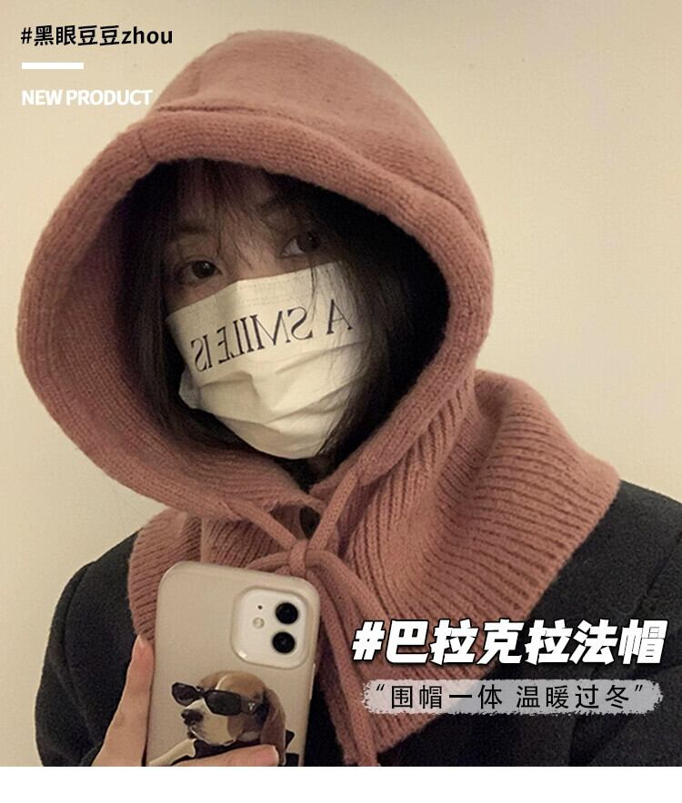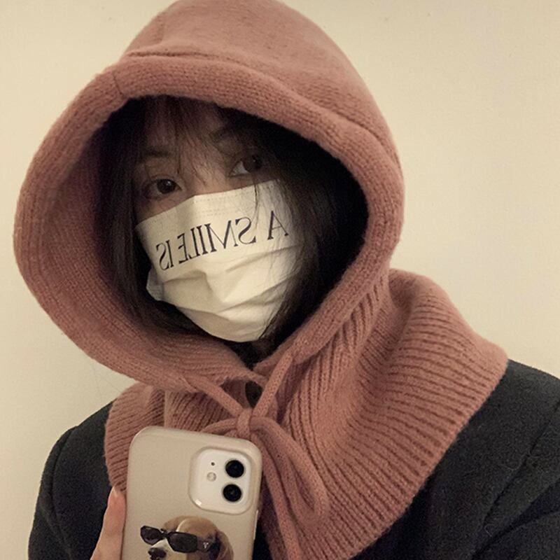 目出し帽帽子女性の冬暖かい帽子スカーフ 1 ニット耳保護ウール帽子ニット帽子 ウィンター 冬物 15dd28571753050