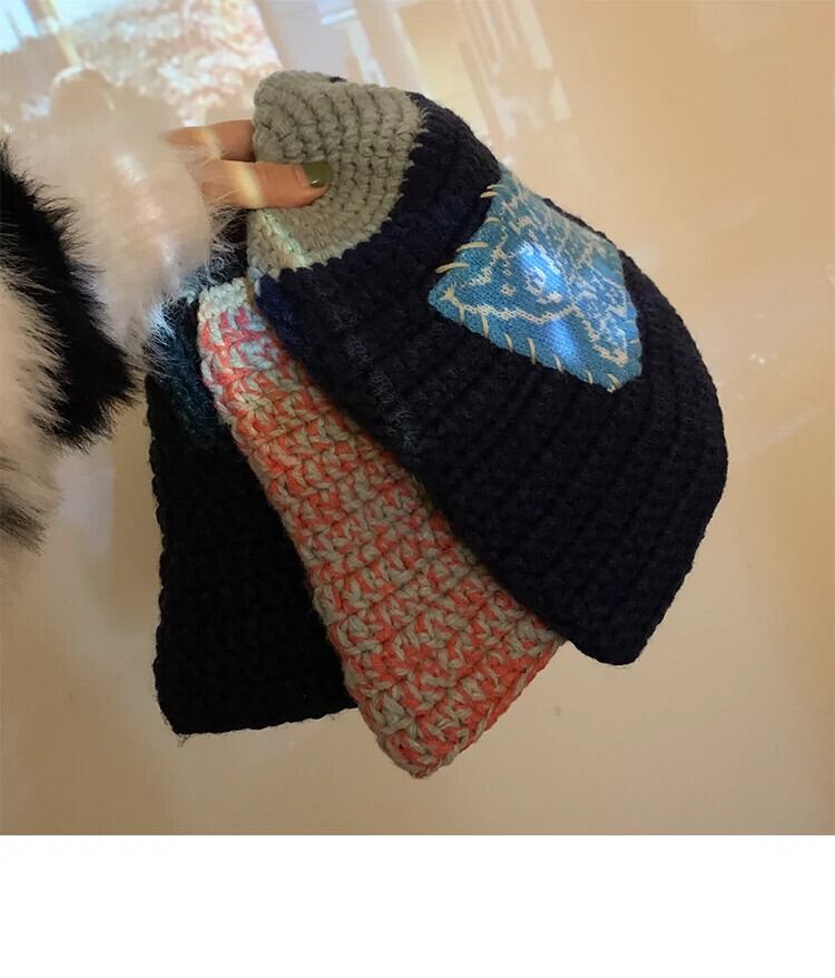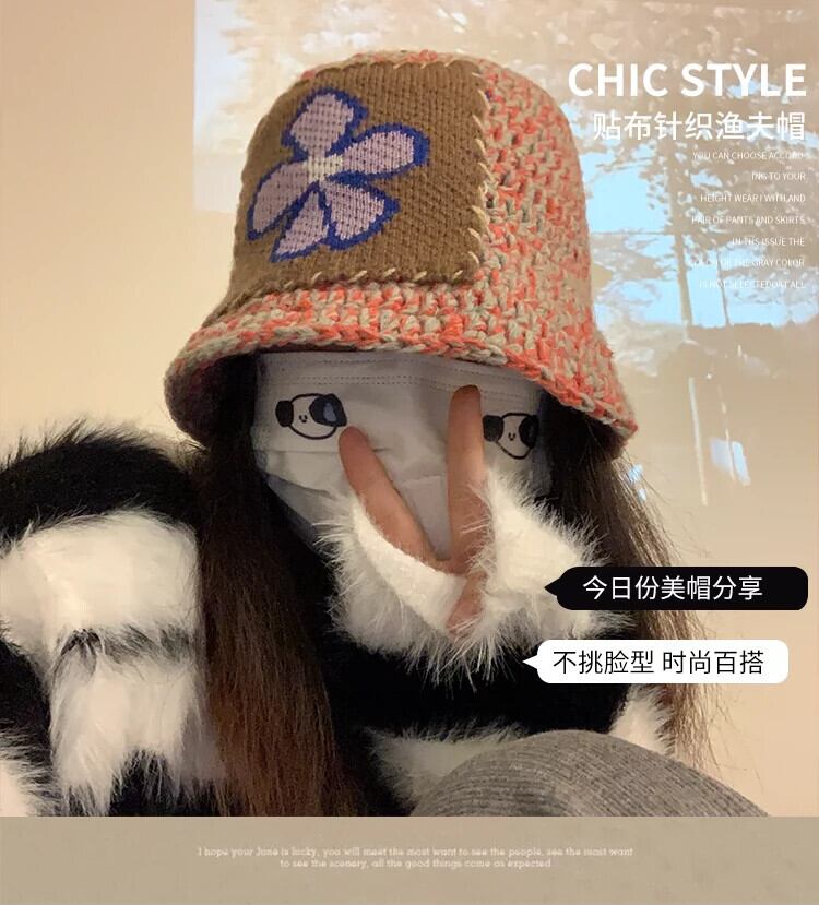 ニッチデザイン手編みカジュアルウールフィッシャーマンハット女性オールマッチカップルニット帽子小顔見せ 15dd44169739226